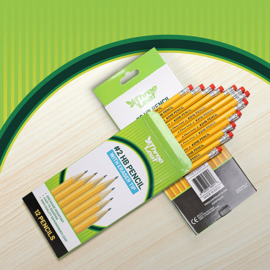 Three Leaf 12 PK YELLOW PENCILS WITH ERASER (72 Pack Per Case)
