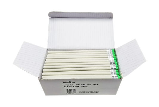 Three Leaf 144 Ct. #2 White Recycled Paper Pencils With Eraser Tip