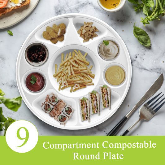 Three Leaf 9 Compartment Bagasse Round Plate