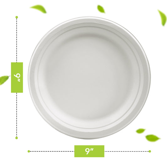 Three Leaf 9" Bagasse Round Plate