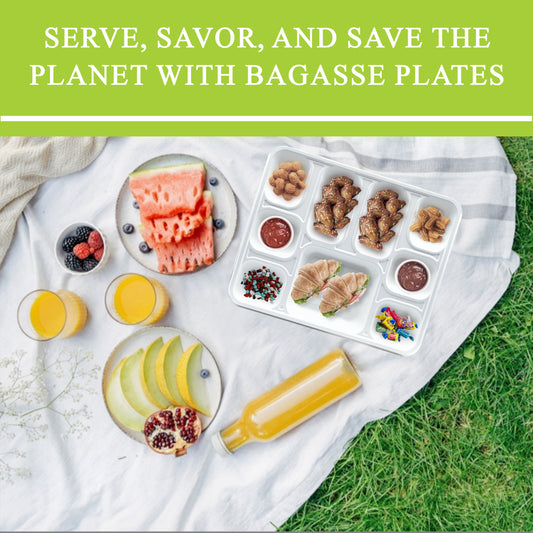 Three Leaf 9" 3 Compartment Bagasse Round Plate