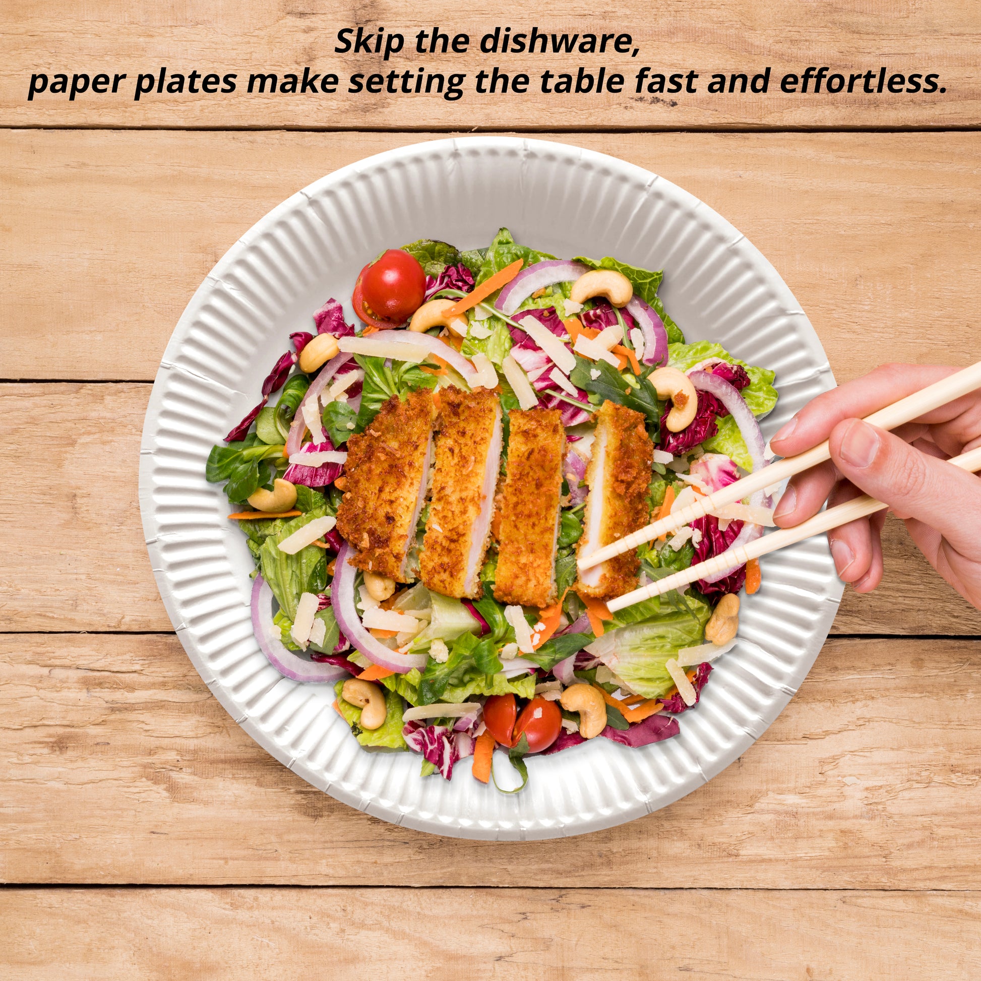 - Microwave and Freezer Safe: Heat leftovers or chill items easily. These paper plates are microwave-safe and can be used to store food in the refrigerator or freezer when needed.