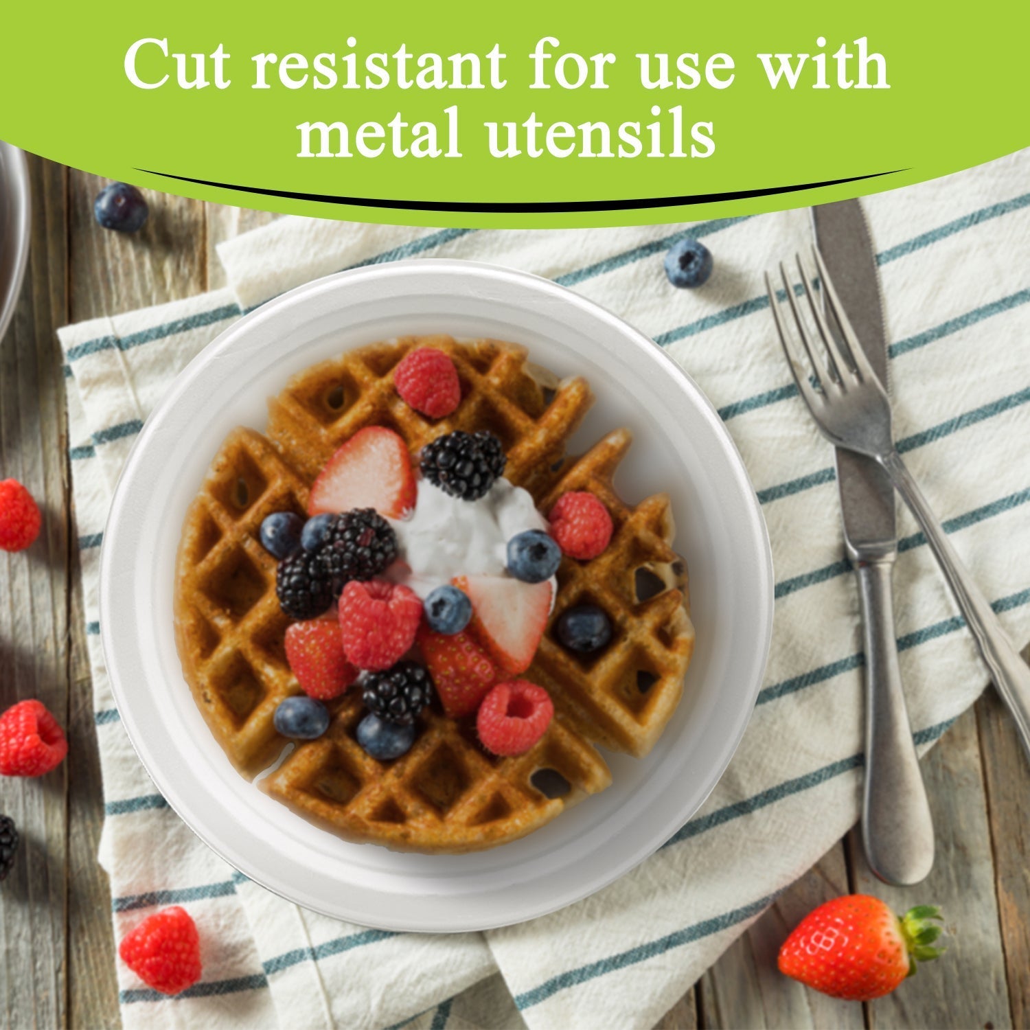 100% Bagasse Sugarcane Fiber: Use our bagasse disposable plate set to conveniently remember special occasions. This dinnerware is perfect for picnics and birthday celebrations thanks to its high quality. On a classy bagasse plate that is microwave safe and freezer safe, it is simple to offer heavy meals