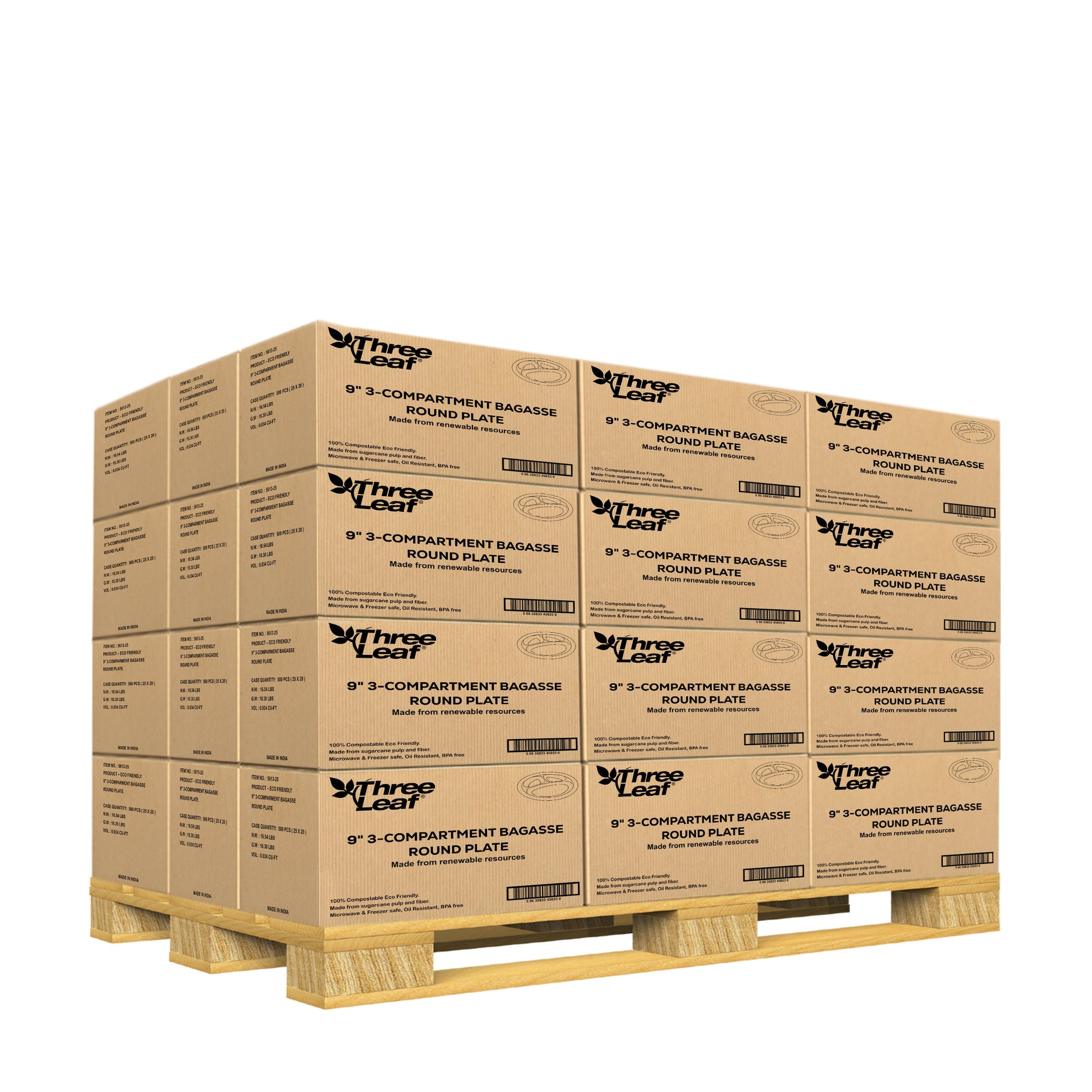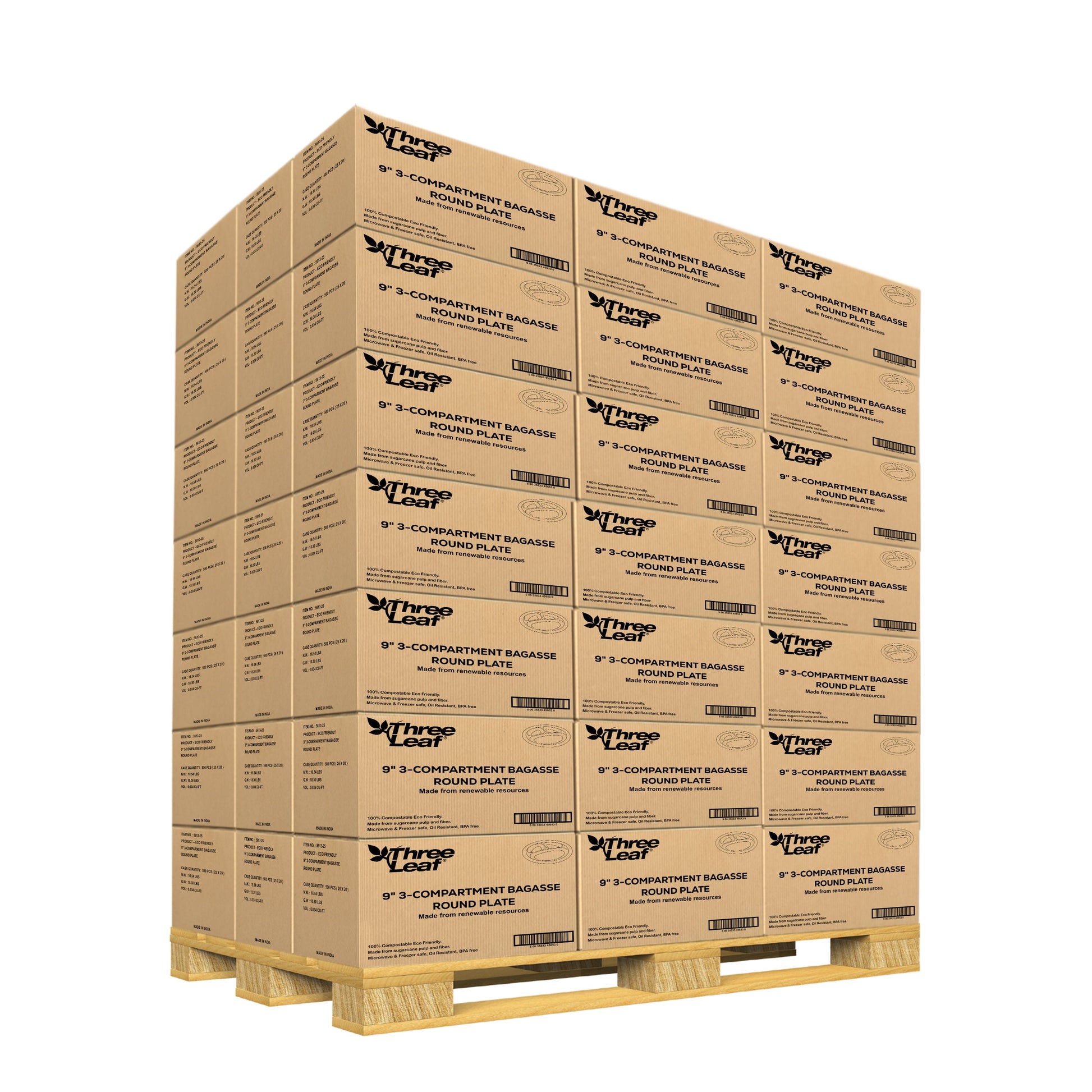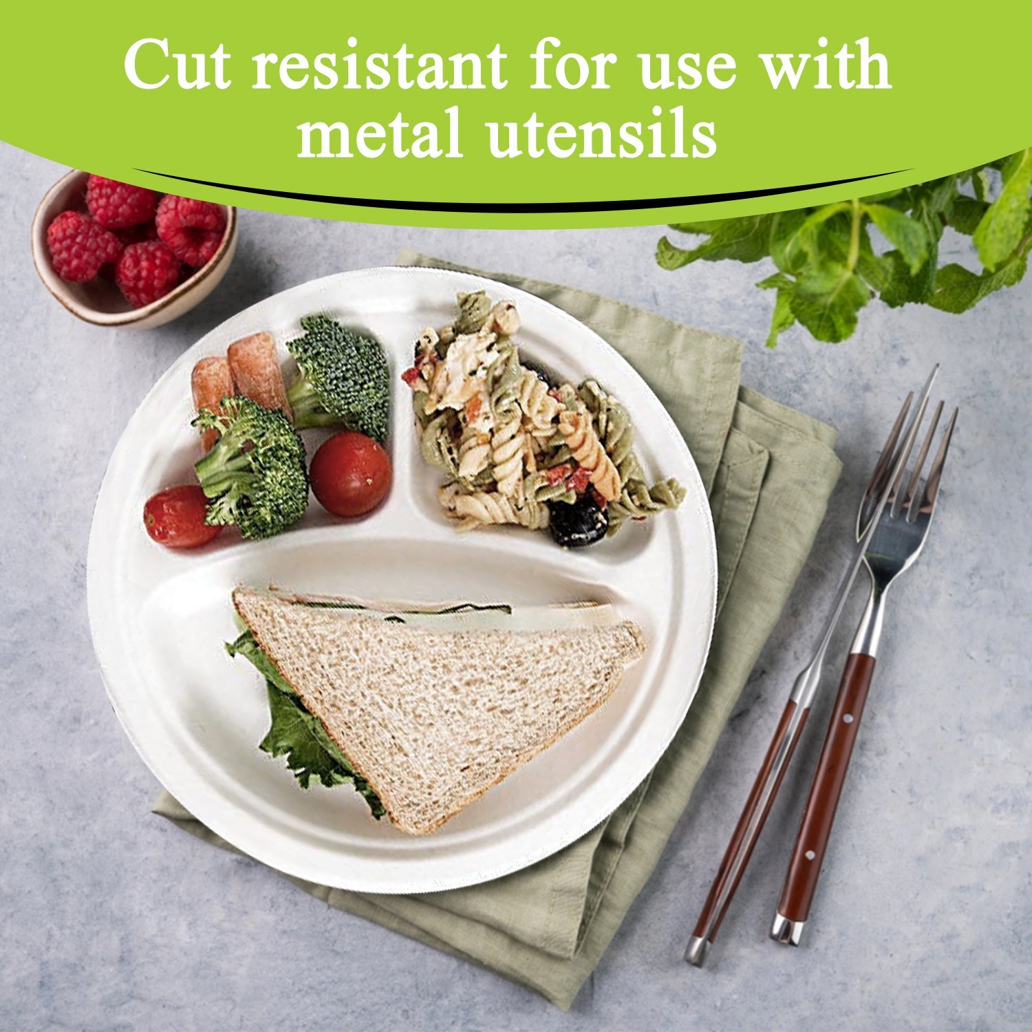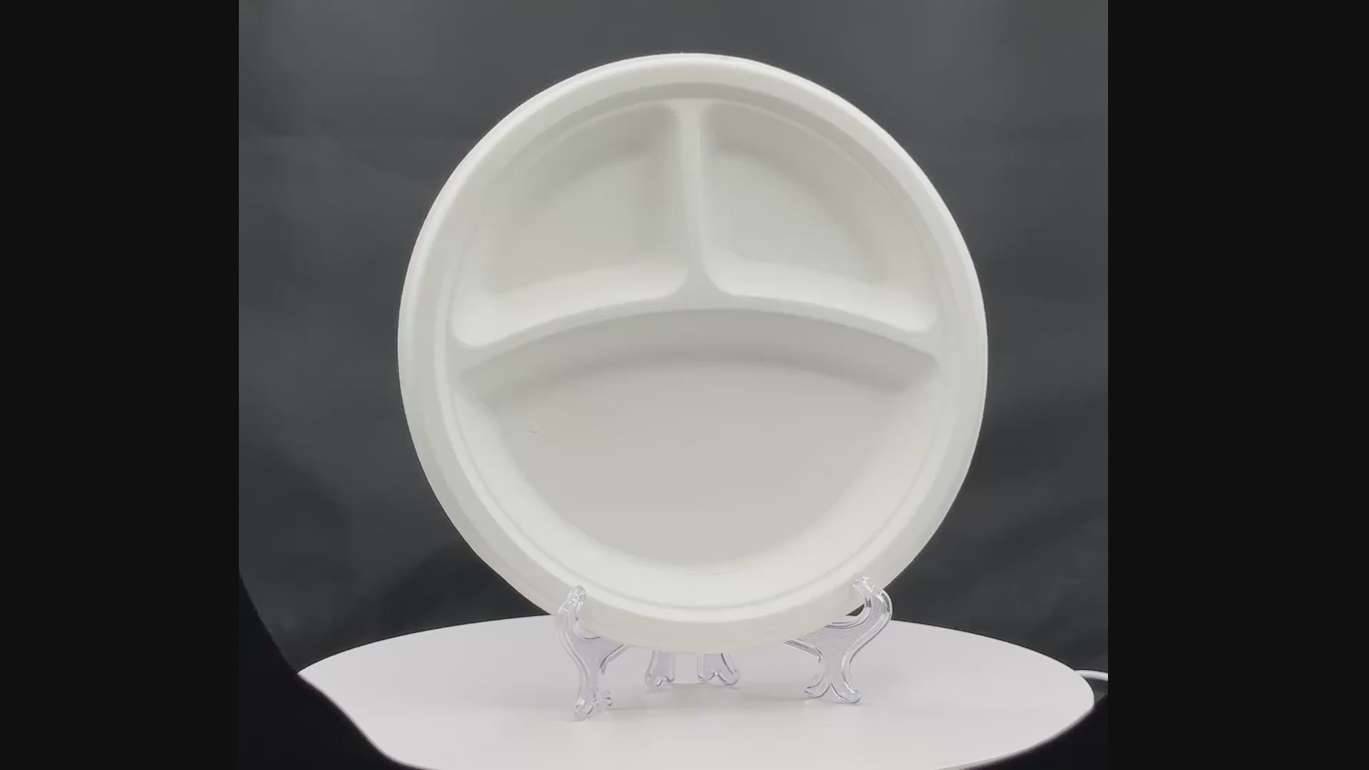 Three Leaf 9" 3 Compartment Bagasse Round Plate