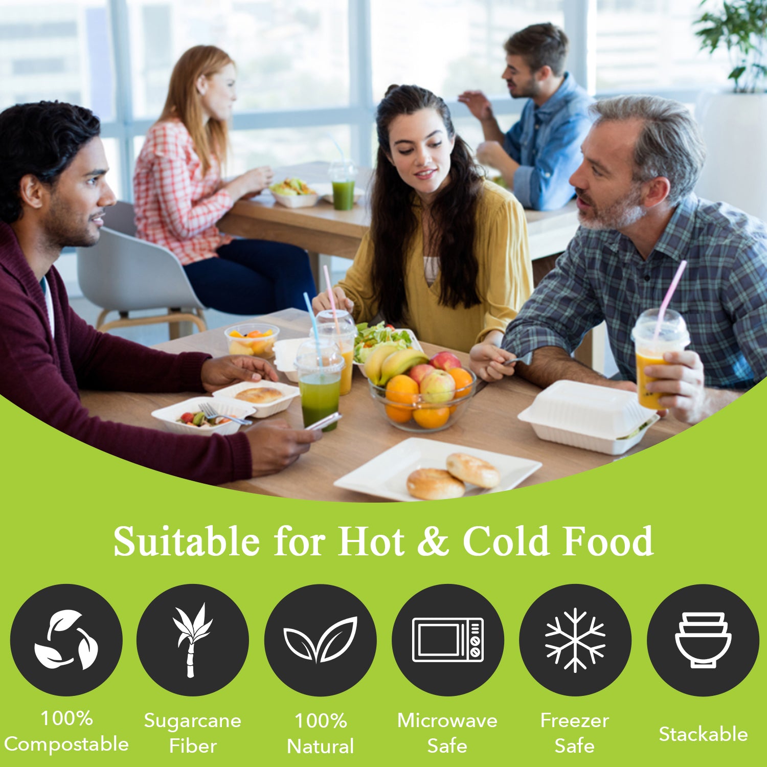 - 100% Bagasse Sugarcane Fiber: Use our bagasse disposable Clamshell set to conveniently remember special occasions. This Clamshell is perfect for picnics and birthday celebrations thanks to its high quality. On a classy bagasse Clamshell that is microwave safe and freezer safe, it is simple to offer heavy meals.