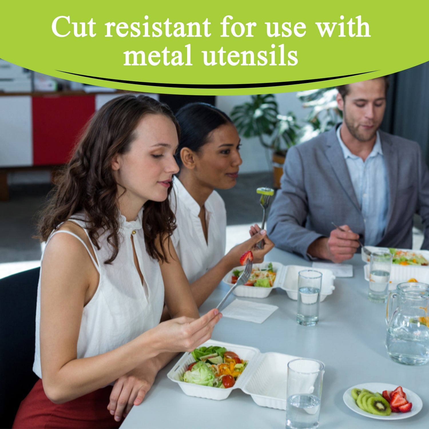 - Sturdy and Hot or Cold Use: These disposable Clamshell are made of a sturdy, relatively rigid organic substance that has a substantial, long-lasting feel and can support heavy food and liquids and cut- and leak-resistant and has no plastic or wax lining.