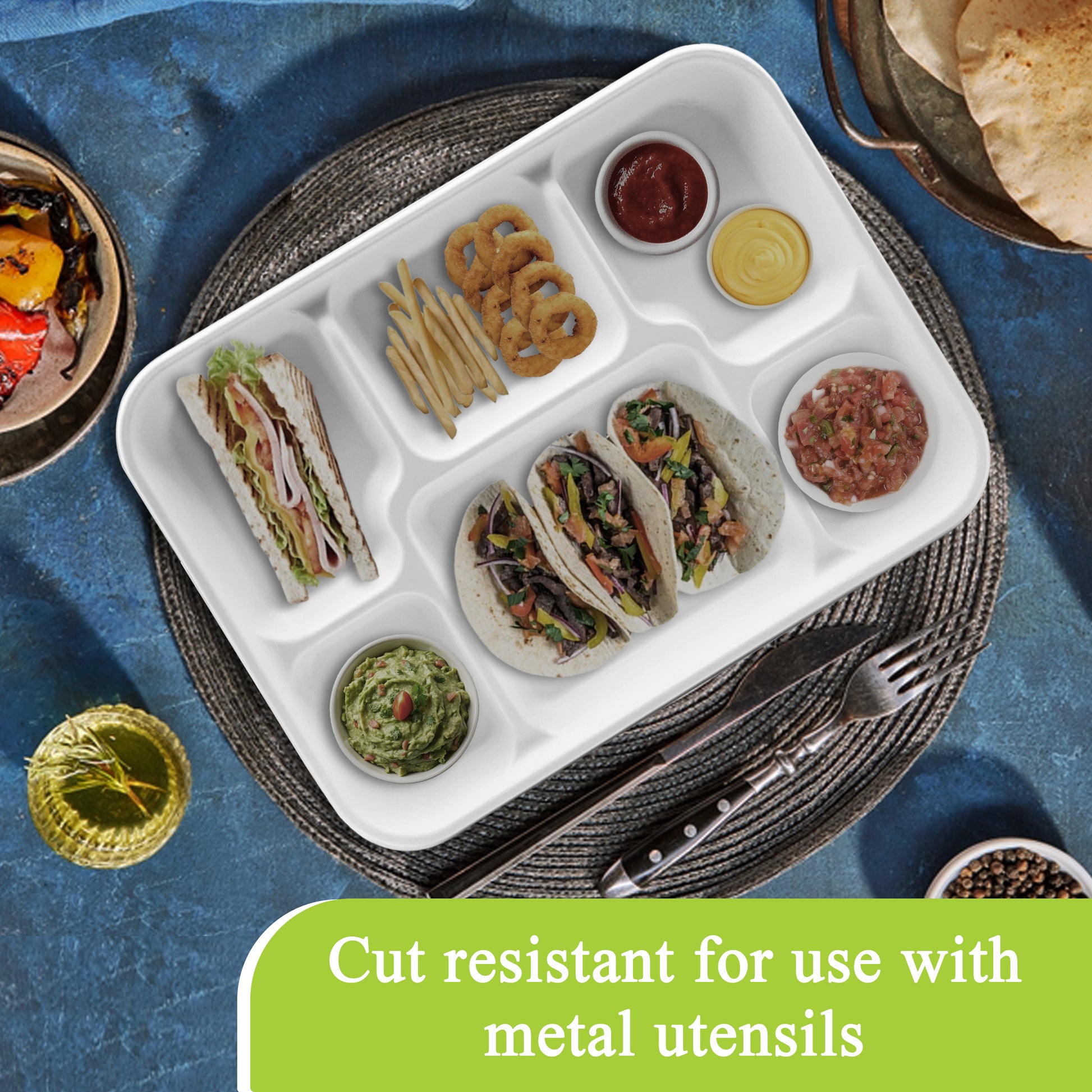 - 100% Bagasse Sugarcane Fiber: Use our bagasse disposable Trays set to conveniently remember special occasions. This dinnerware is perfect for picnics and birthday celebrations thanks to its high quality. On a classy bagasse Trays that is microwave safe and freezer safe, it is simple to offer heavy meals.