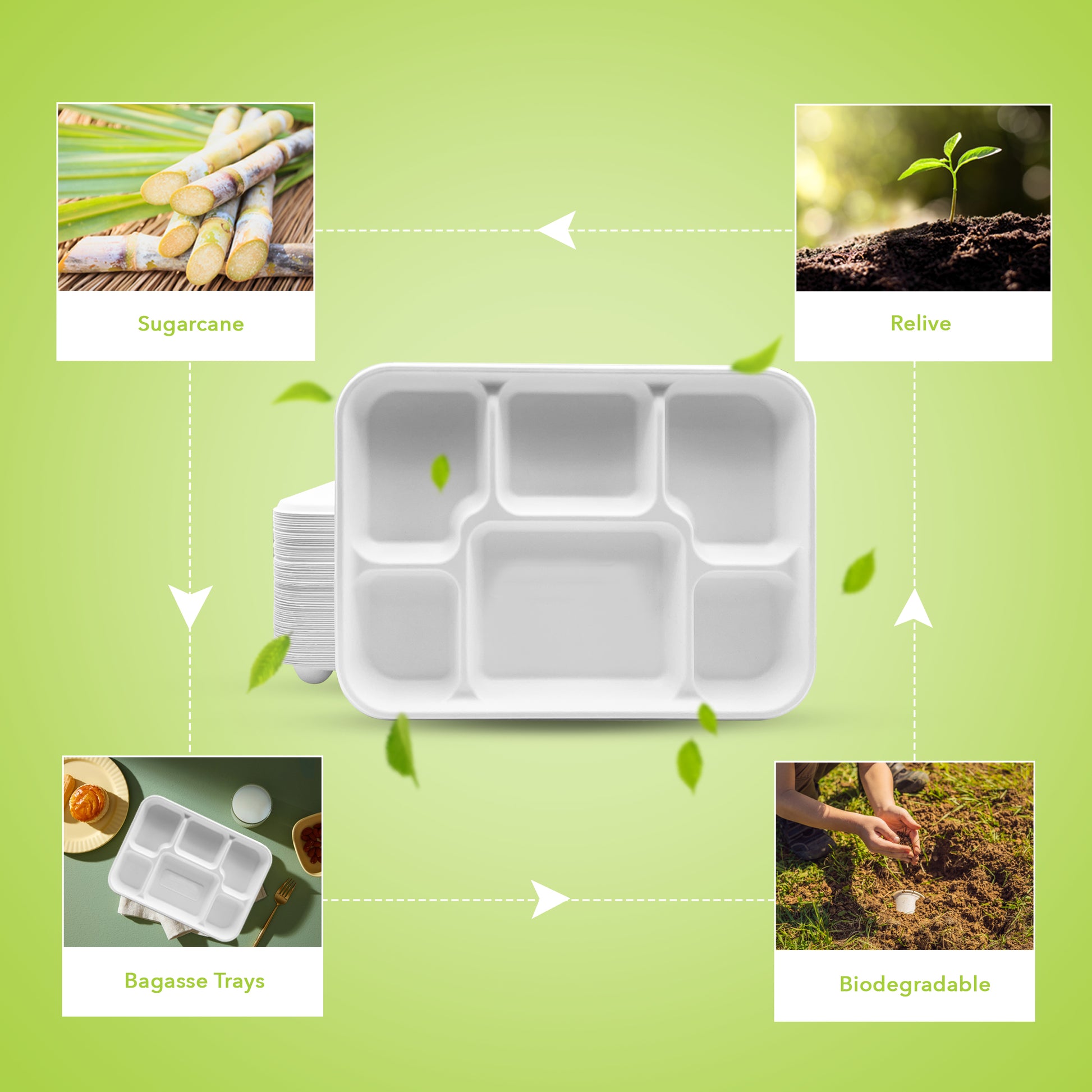 - Less Storage Space: Compared to other plastic and Styrofoam Trays, these eco-friendly Trays require less storage room. They can simply be stacked one on top of the other anywhere. If dropped accidentally, they won't break readily.