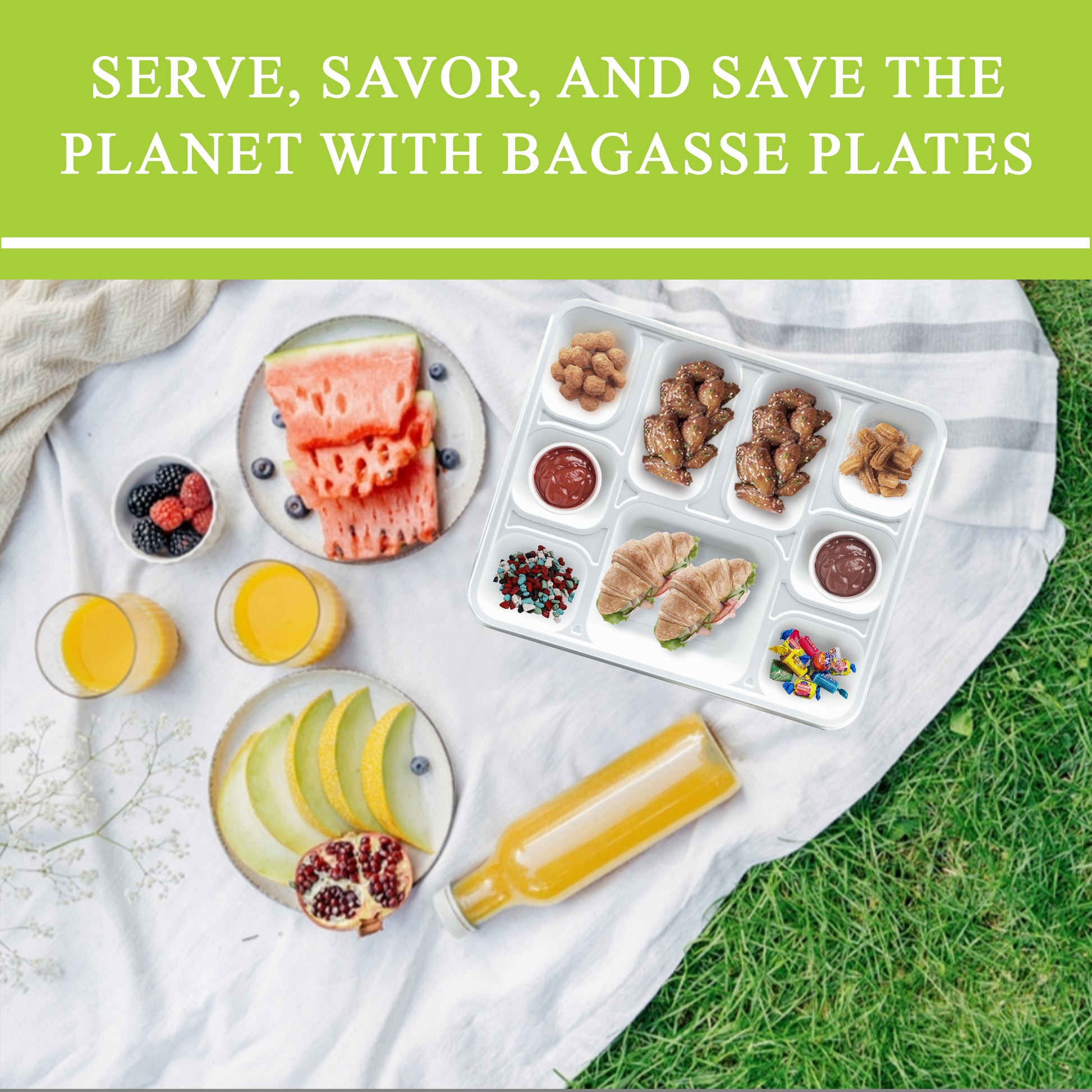 - 100% Bagasse Sugarcane Fiber: Use our bagasse disposable Trays set to conveniently remember special occasions. This dinnerware is perfect for picnics and birthday celebrations thanks to its high quality. On a classy bagasse Trays that is microwave safe and freezer safe, it is simple to offer heavy meals.