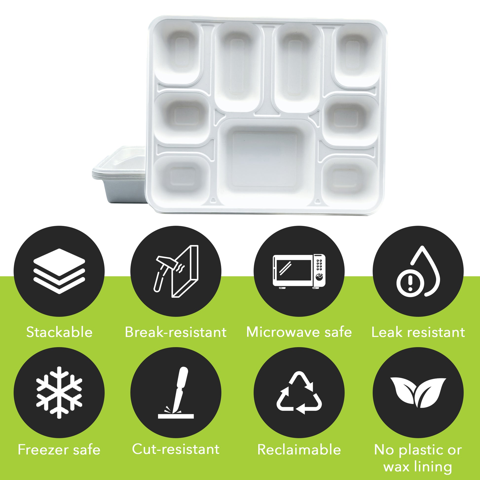 - Less Storage Space: Compared to other plastic and Styrofoam Trays, these eco-friendly Trays require less storage room. They can simply be stacked one on top of the other anywhere. If dropped accidentally, they won't break readily.