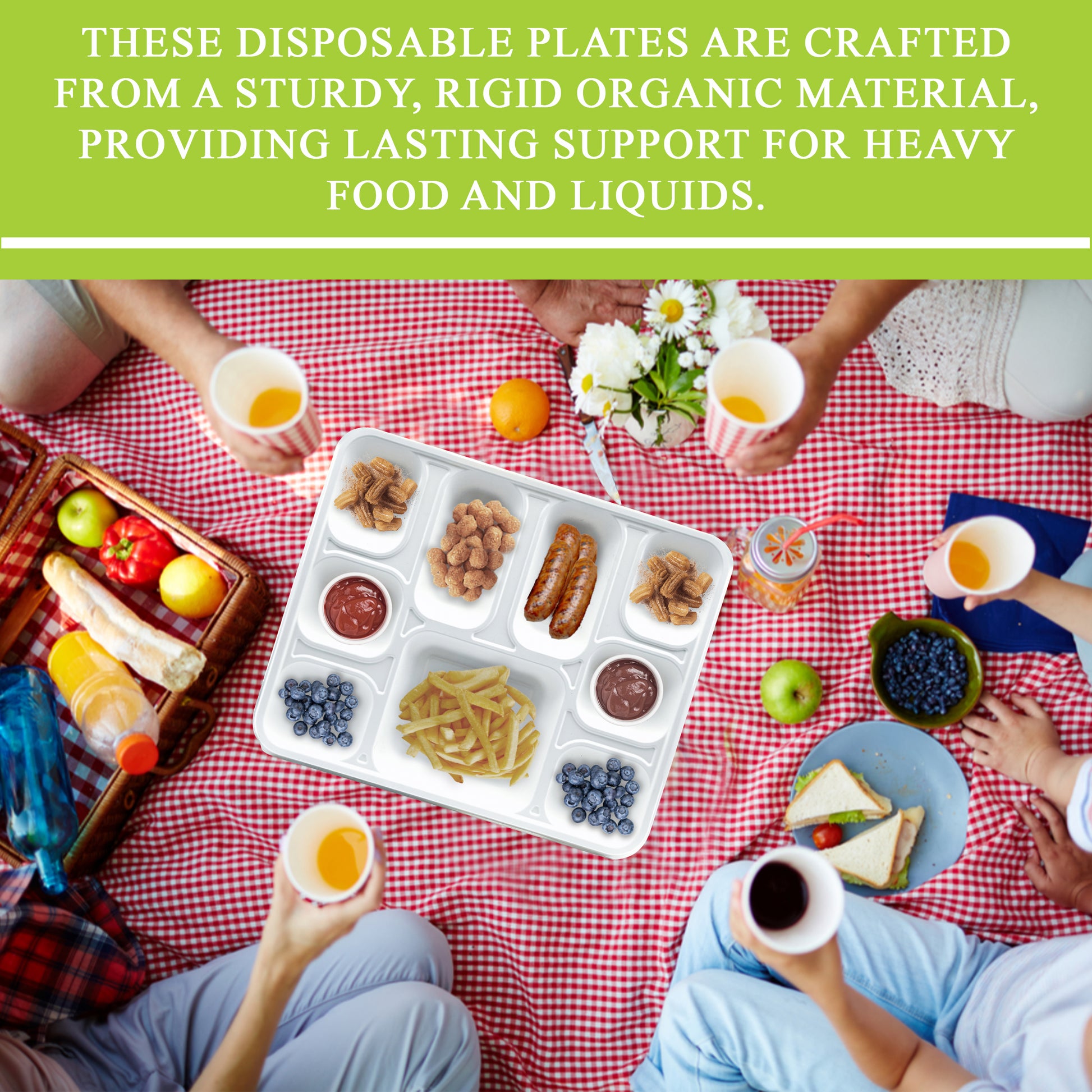 - Sturdy and Hot or Cold Use: These disposable Trays are made of a sturdy, relatively rigid organic substance that has a substantial, long-lasting feel and can support heavy food and liquids and cut- and leak-resistant and has no plastic or wax lining.