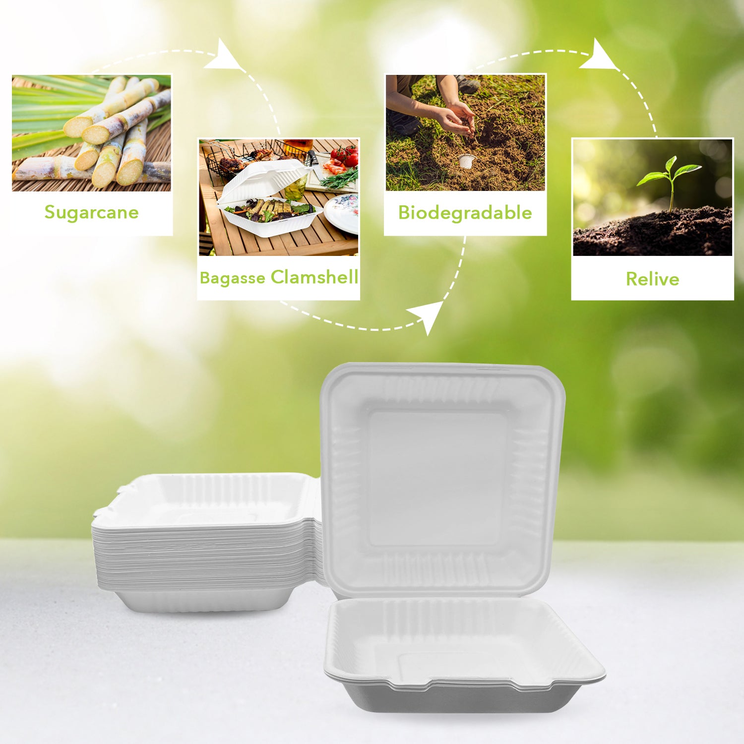 - 100% Bagasse Sugarcane Fiber: Use our bagasse disposable Clamshell set to conveniently remember special occasions. This Clamshell is perfect for picnics and birthday celebrations thanks to its high quality. On a classy bagasse Clamshell that is microwave safe and freezer safe, it is simple to offer heavy meals.