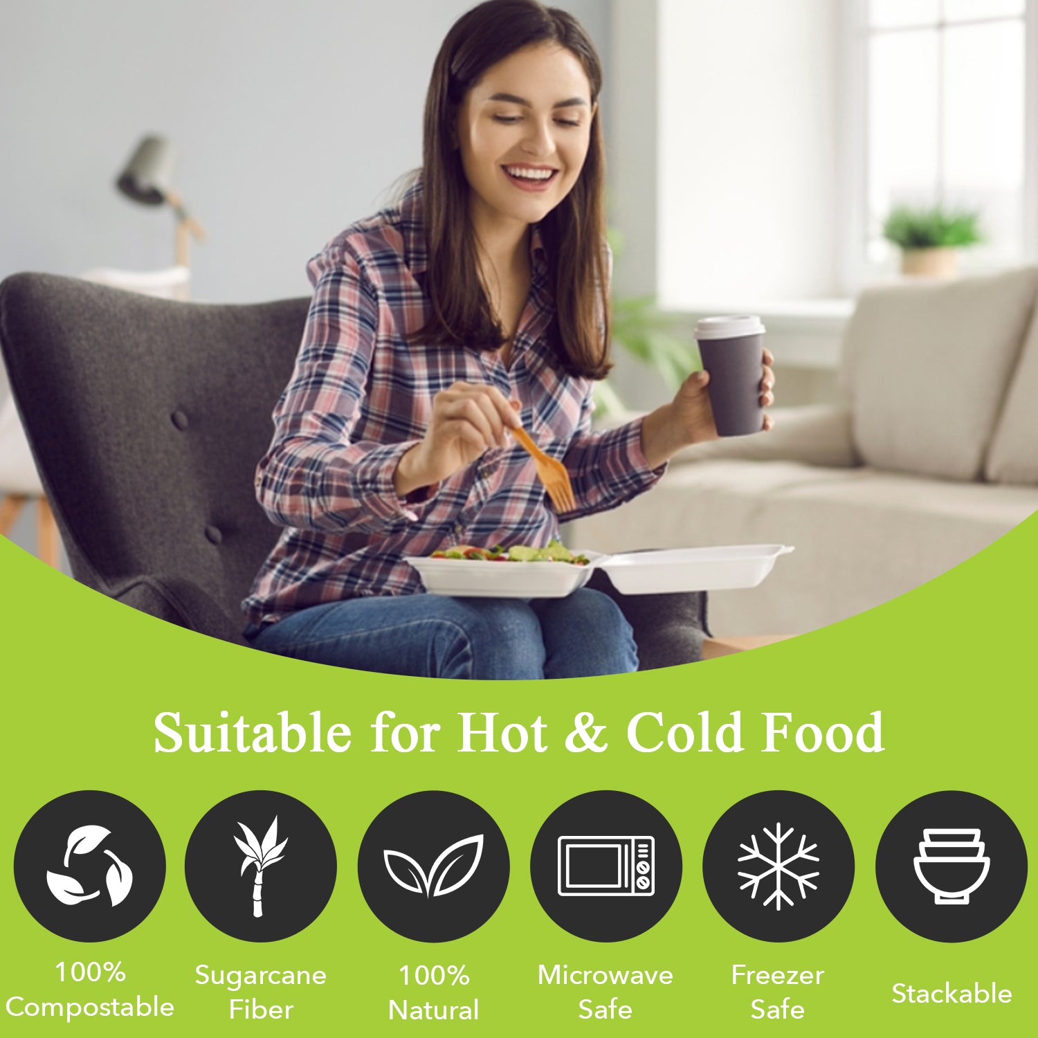 - Environment Friendly: Made entirely from sustainable, renewable, and biodegradable sugarcane fiber and ideal for composting for simple disposal. making them good for the environment.