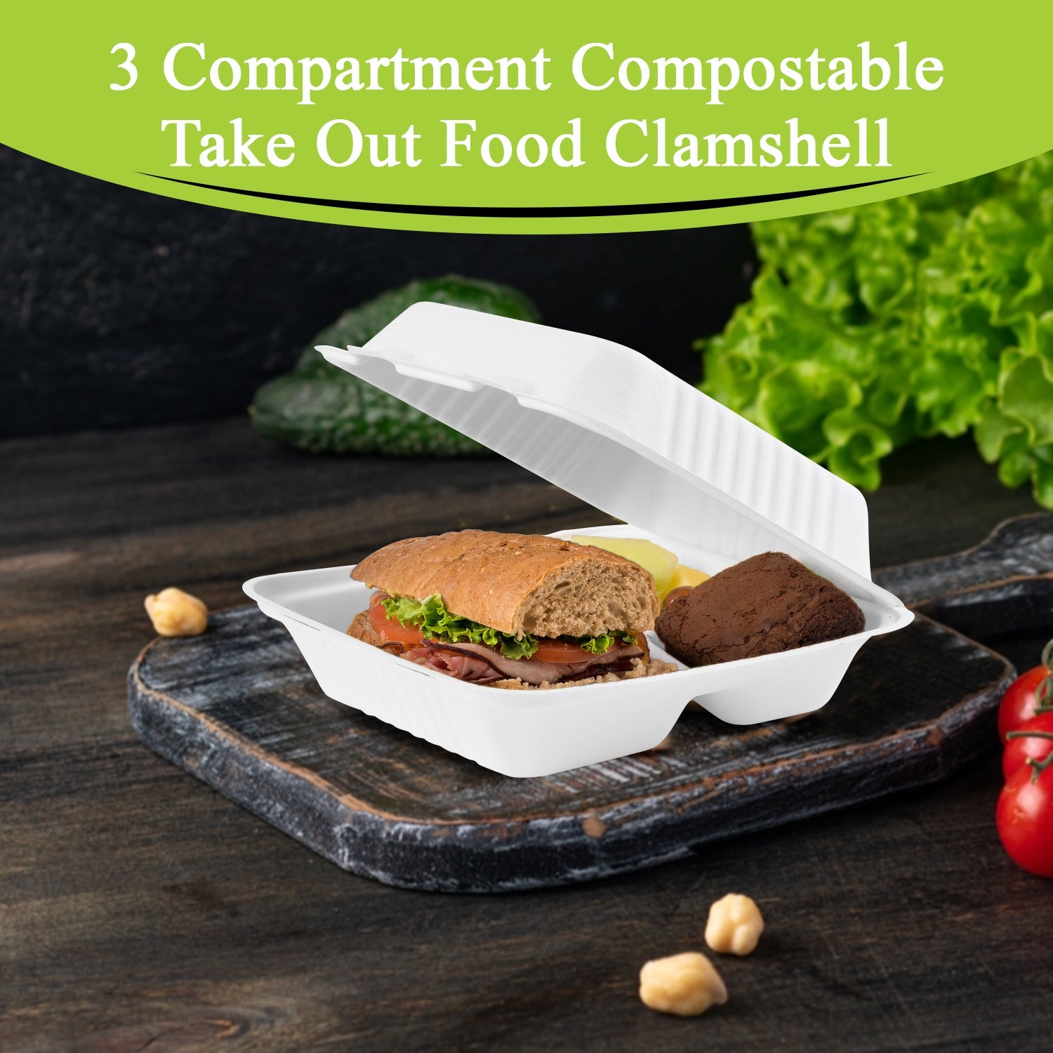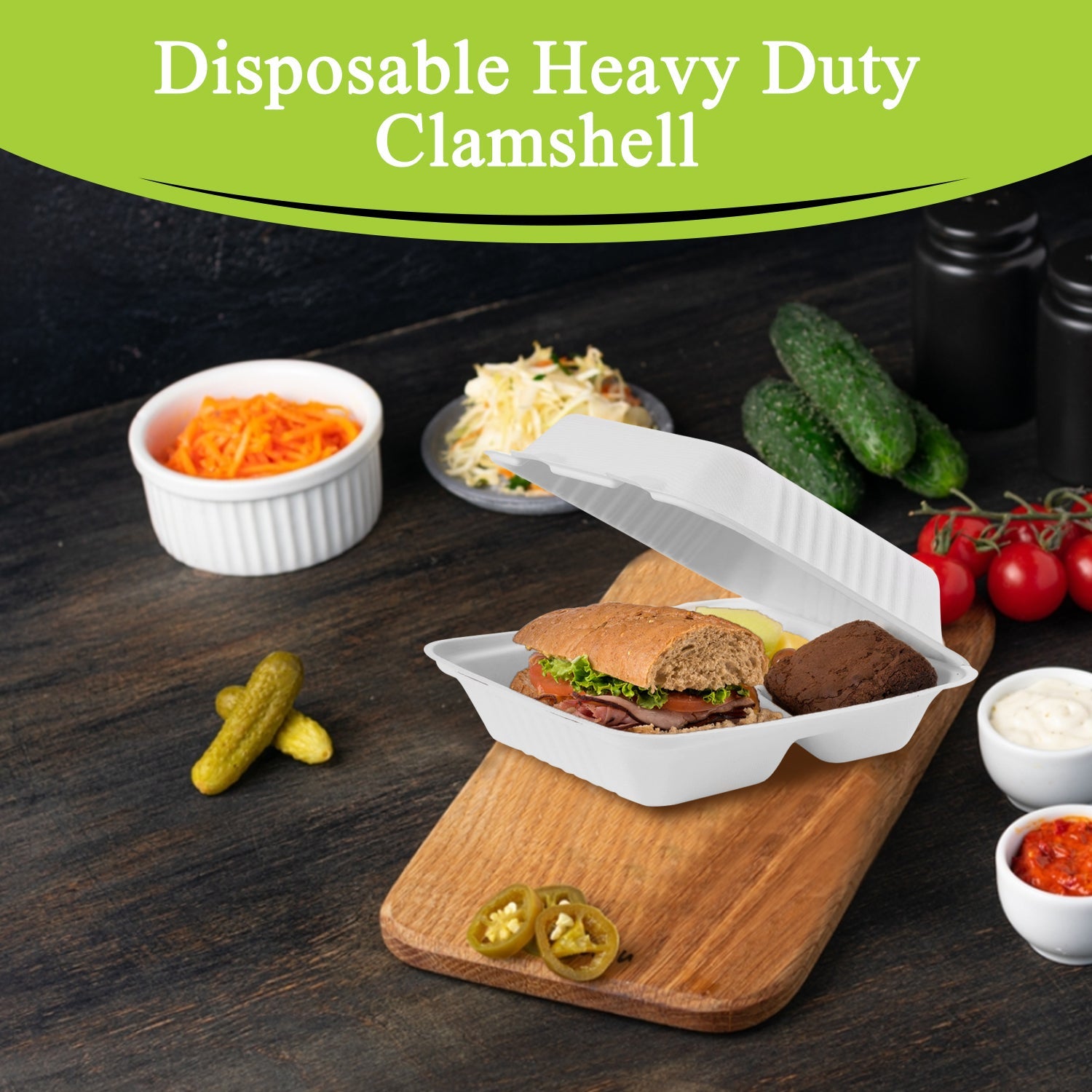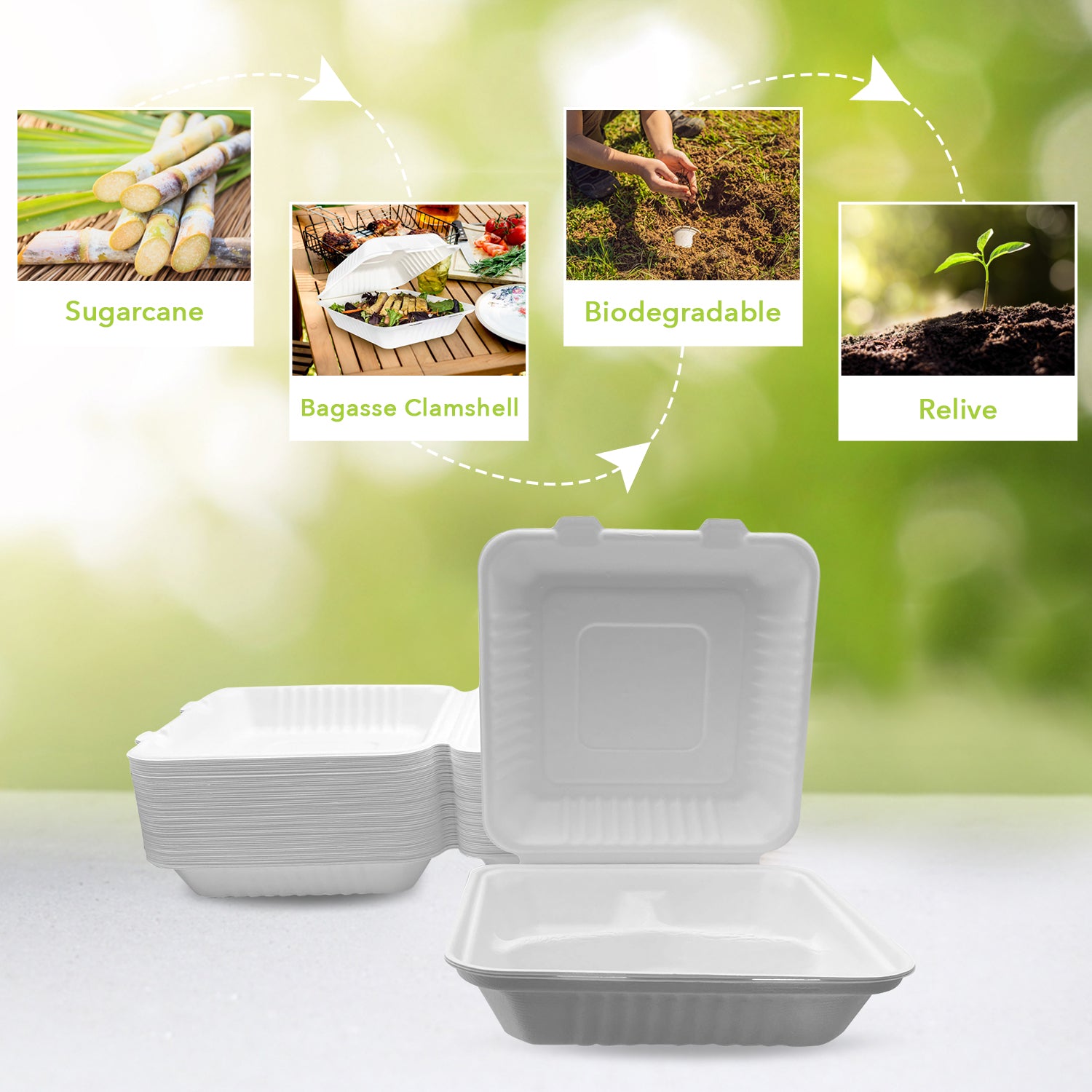 - 100% Bagasse Sugarcane Fiber: Use our bagasse disposable Clamshell set to conveniently remember special occasions. This Clamshell is perfect for picnics and birthday celebrations thanks to its high quality. On a classy bagasse Clamshell that is microwave safe and freezer safe, it is simple to offer heavy meals.