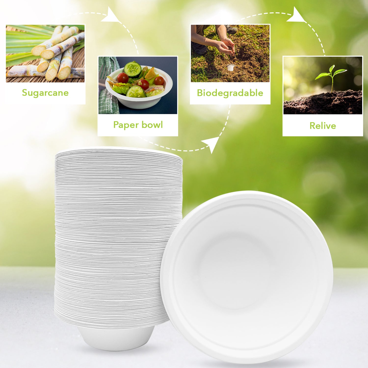 Less Storage Space: Compared to other plastic and Styrofoam Bowls, these eco-friendly Bowls require less storage room. They can simply be stacked one on top of the other anywhere. If dropped accidentally, they won't break readily.
