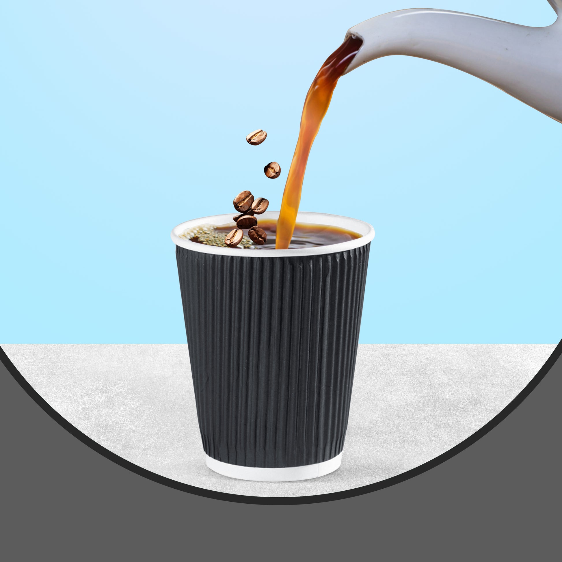 Three Leaf 9 Oz. Ripple Wall Cups, (Black) 900 Ct. (20 Packs Of 45)