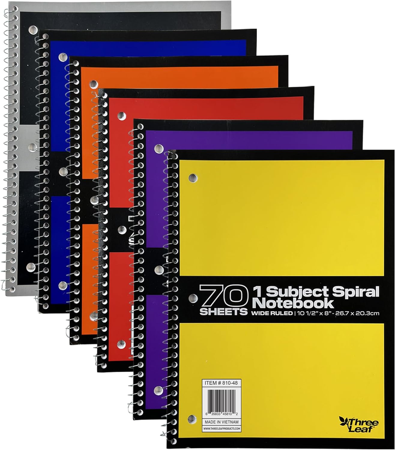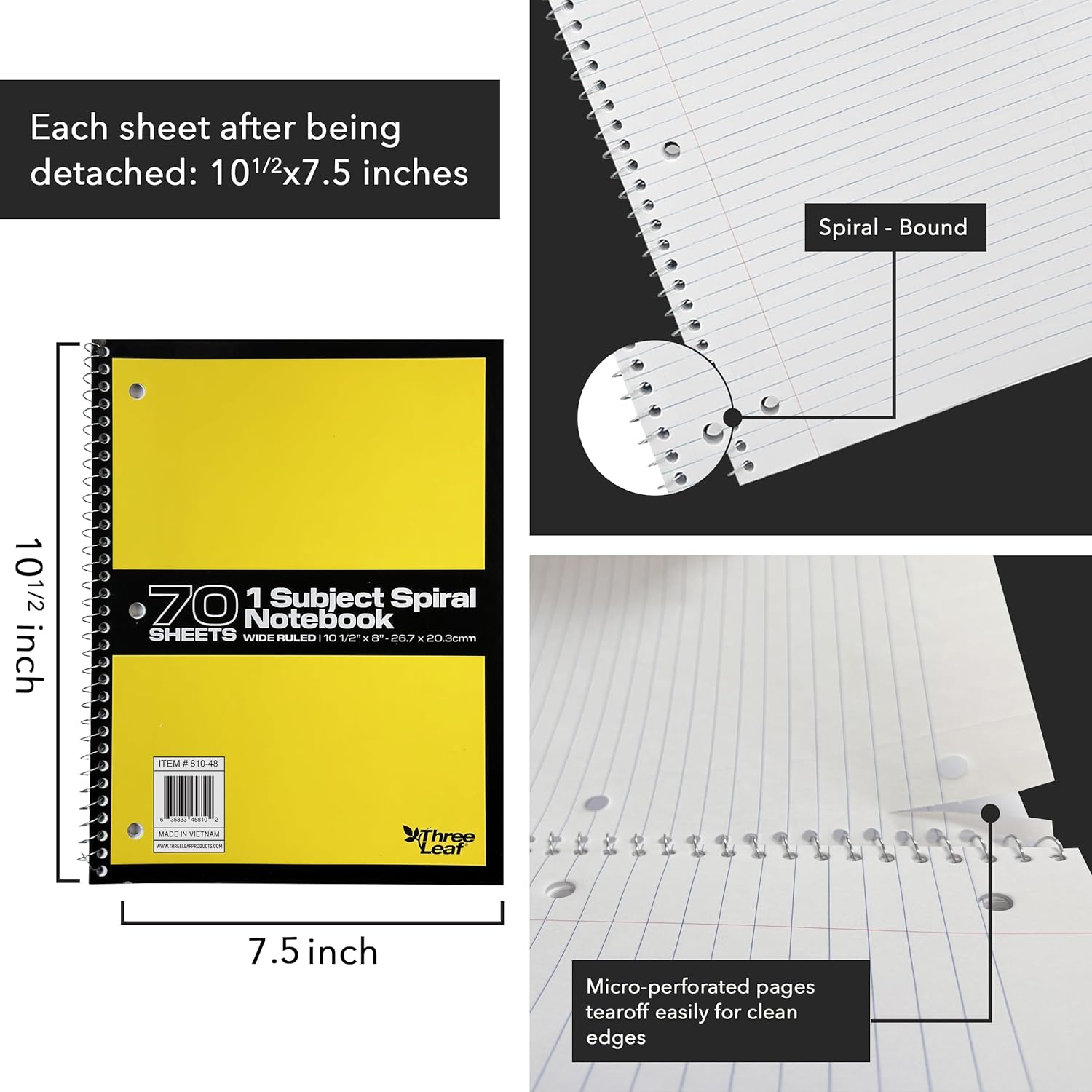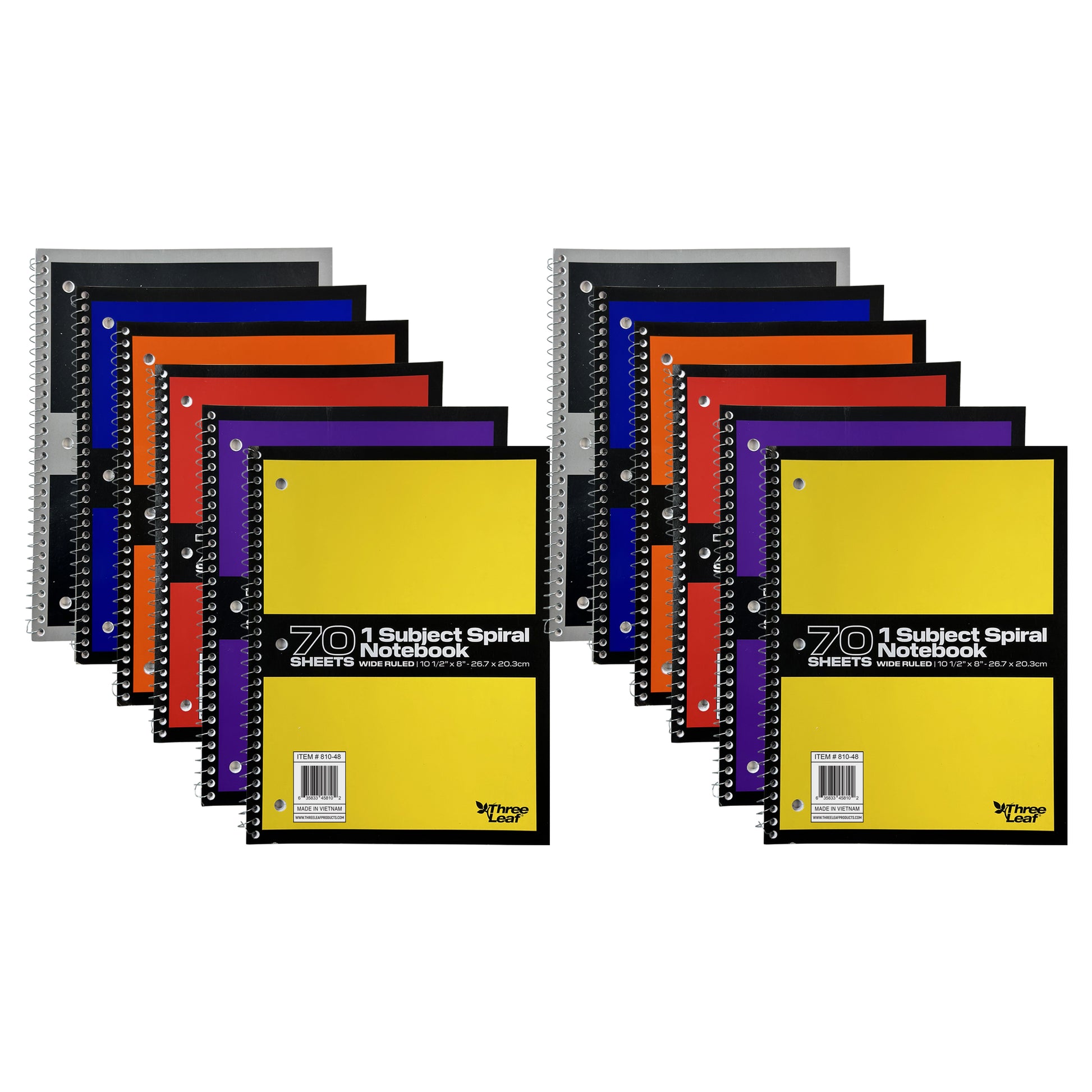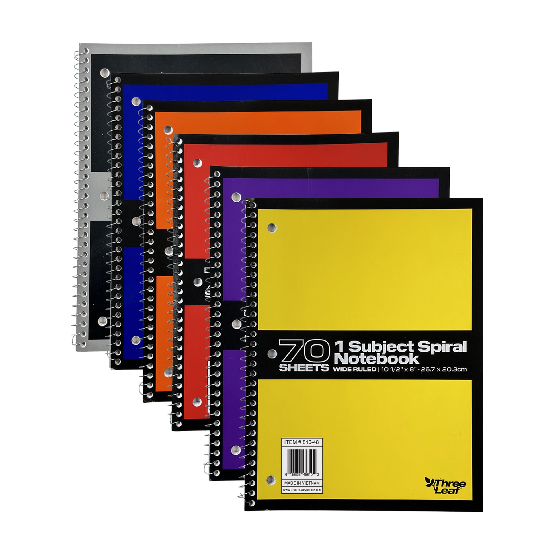 Three Leaf 70 Ct.10.5 X 8 1- Sub Spiral Notebook, Wide Ruled