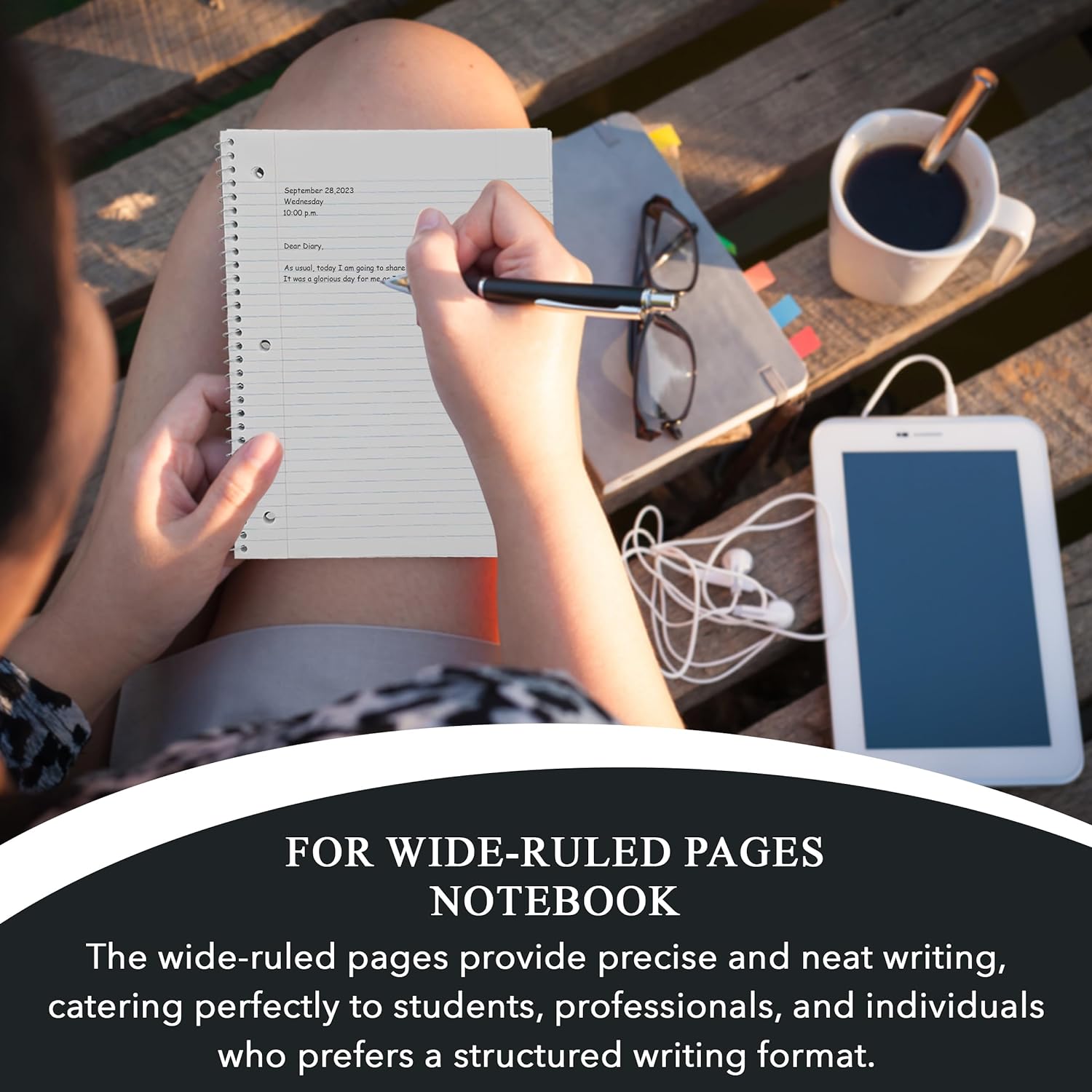 - Wide Ruled Pages: Each page is wide ruled, allowing for neat and legible handwriting. Ideal for students, professionals, and anyone who prefers wider spacing.