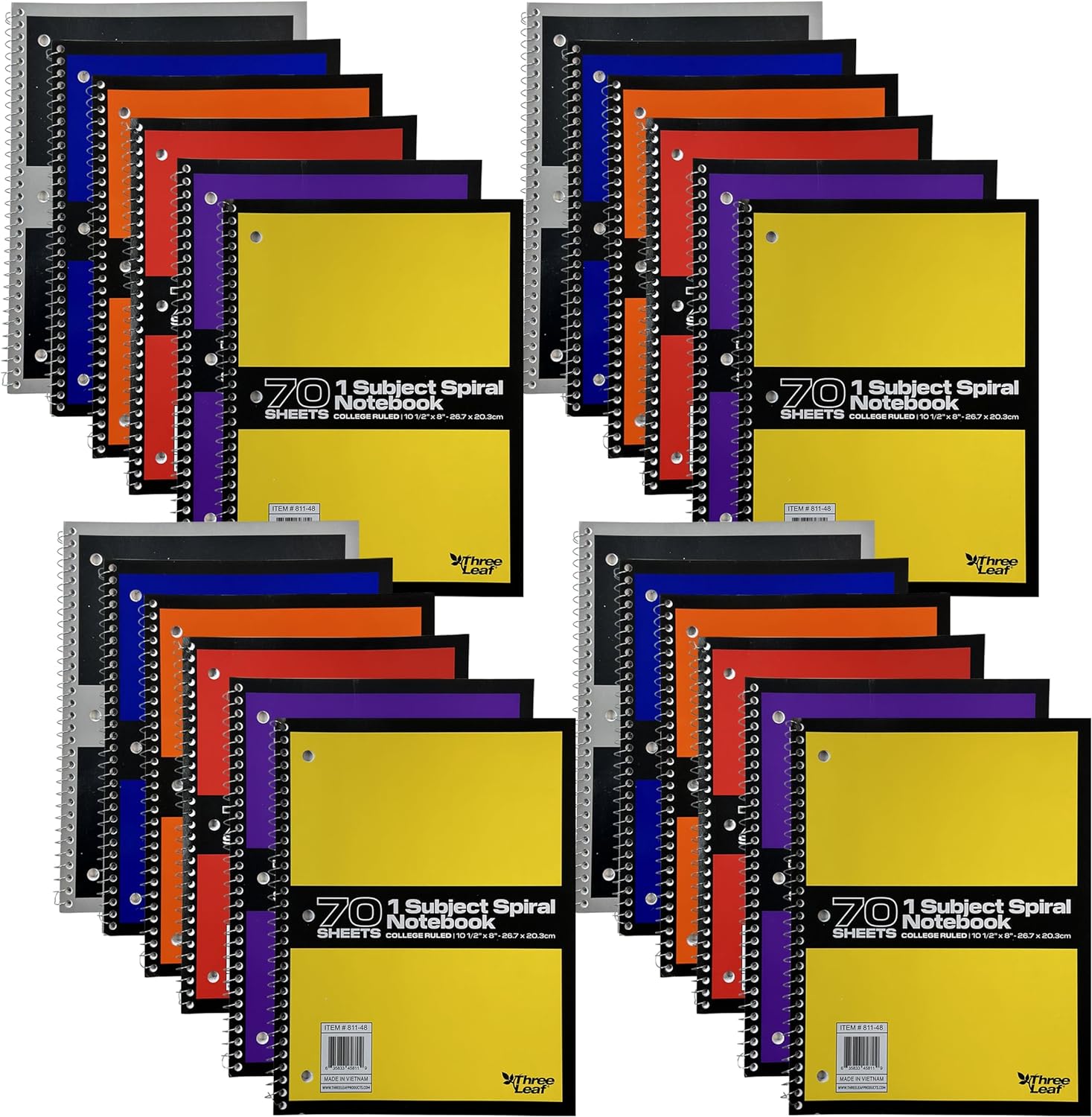Three Leaf 70 Ct. 10.5 X 8 1- Sub Spiral Notebook, College Ruled