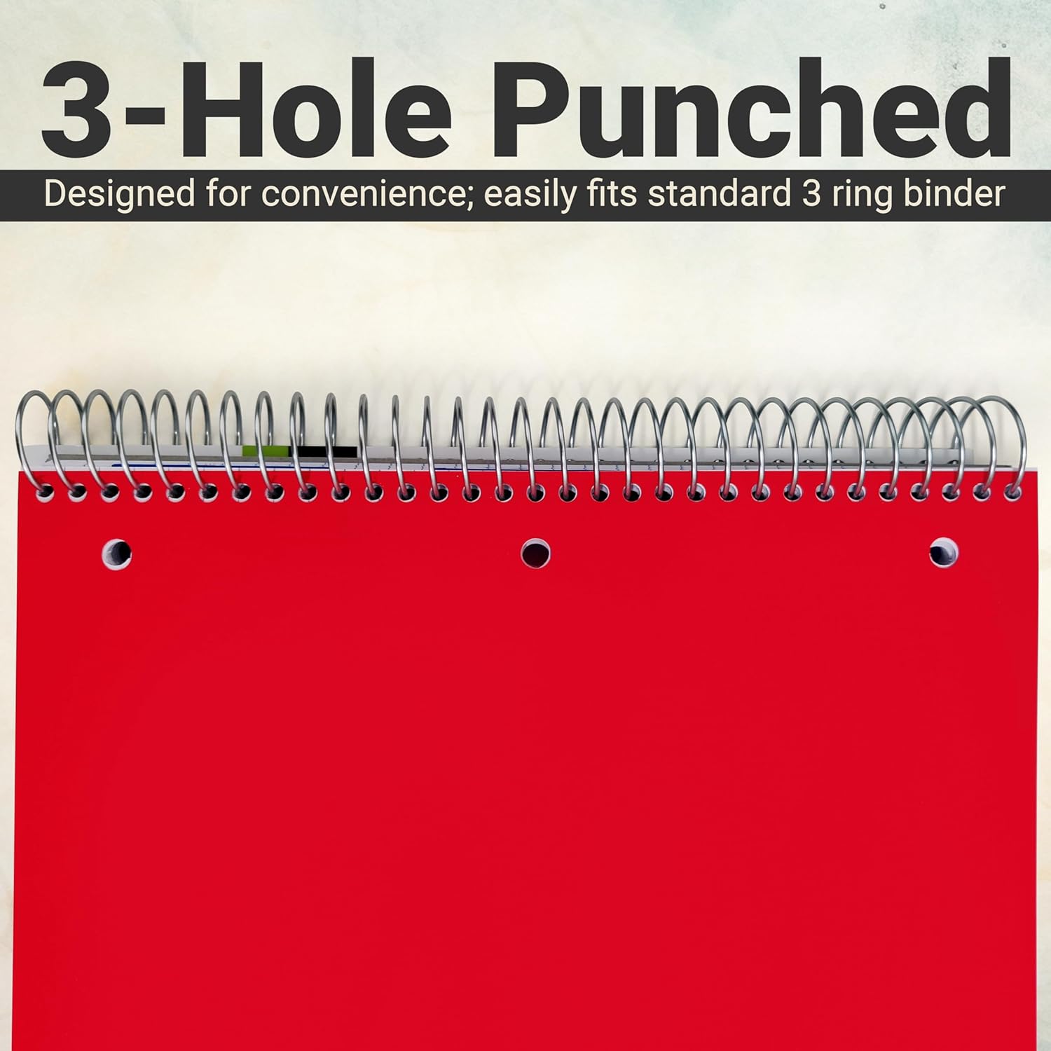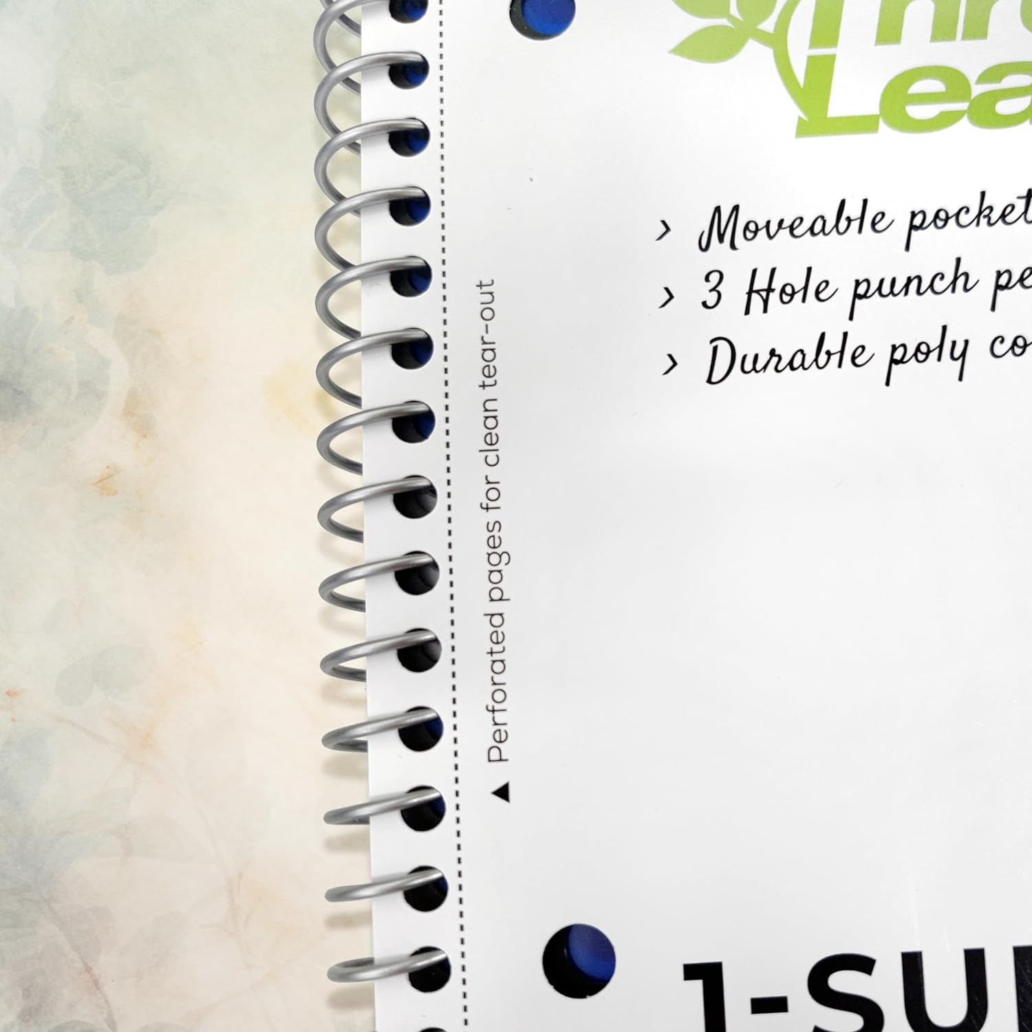 Three Leaf 100 Ct, 11 X 8 1/2, 1 Subject Poly Cover Spiral Notebook, College Ruled, Pocket Divider, Black, Blue, Green, Red.