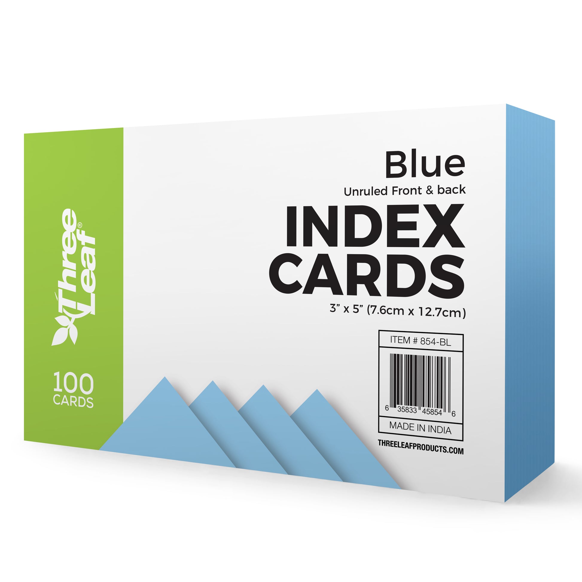 Three Leaf 100 Ct. 3 X 5, Index Cards Unruled, Blue