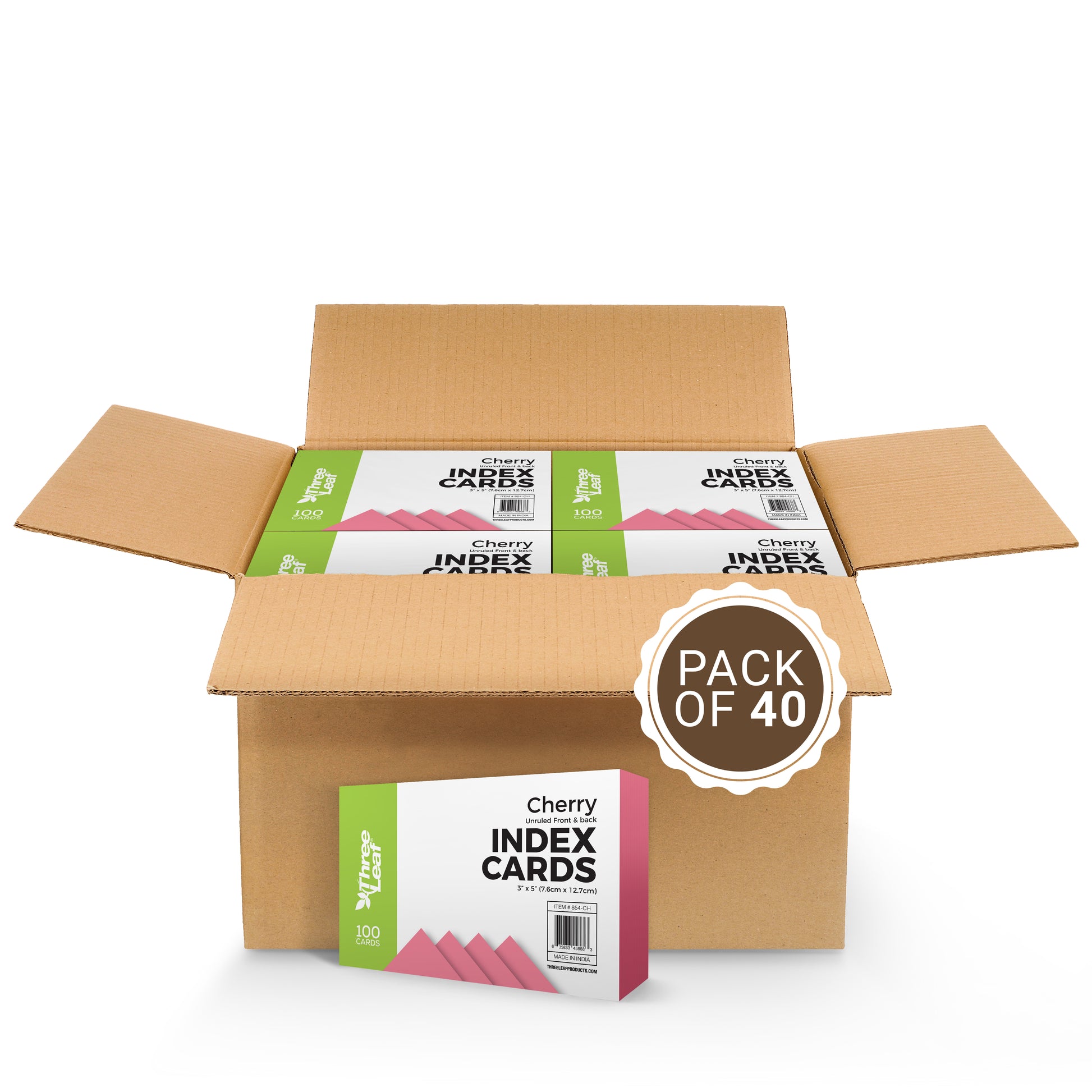 Three Leaf 100 Ct. 3 X 5, Index Cards Unruled, Cherry