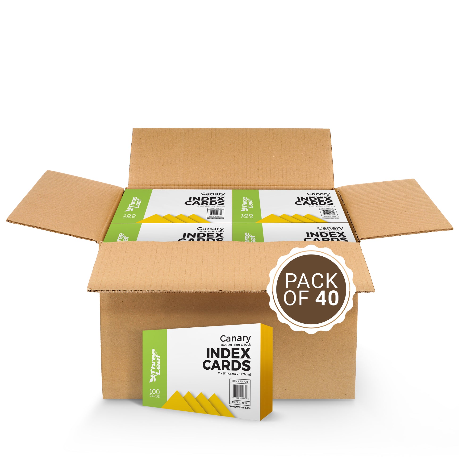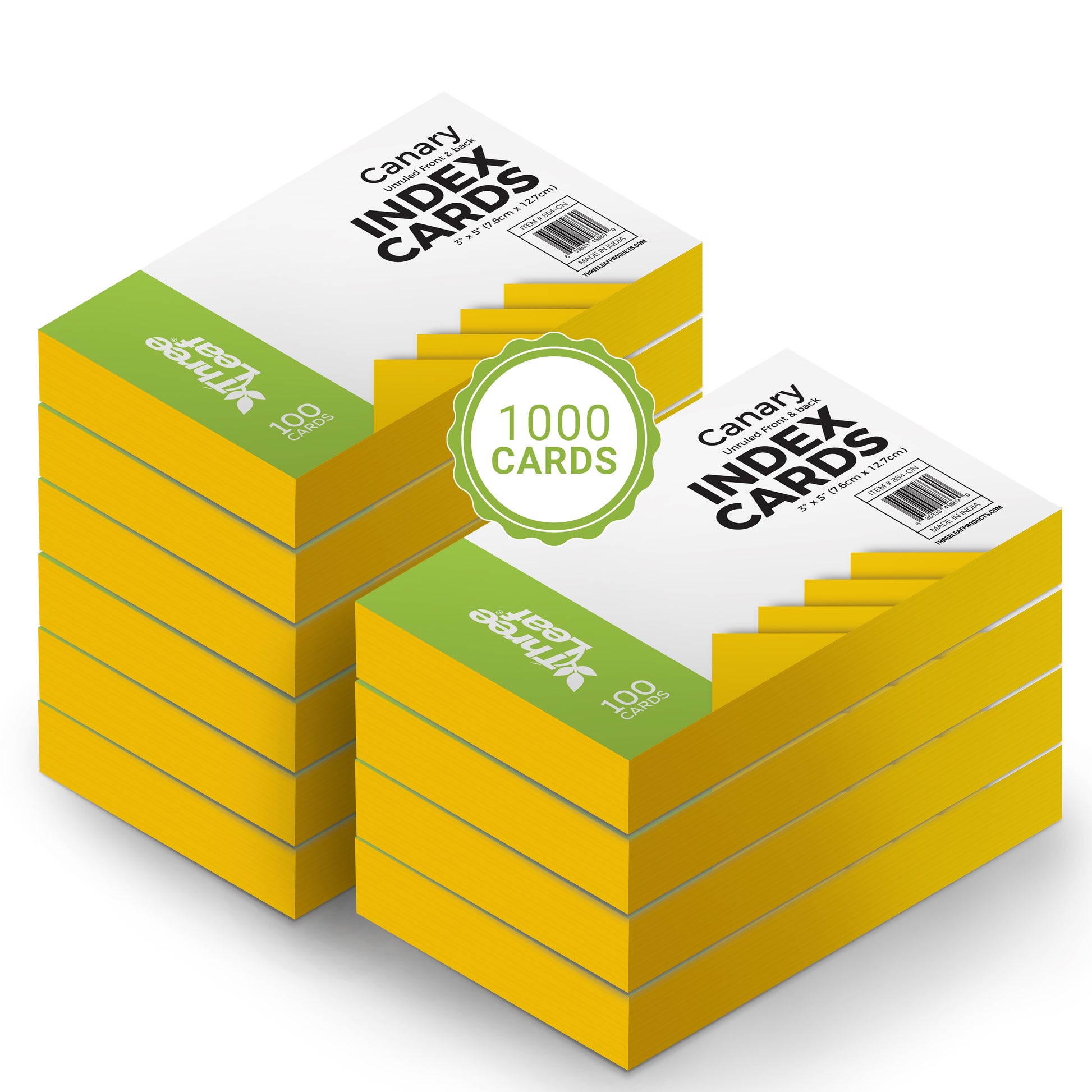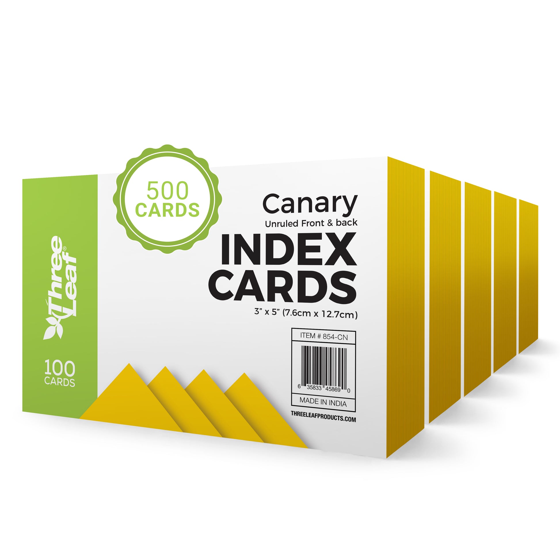 Three Leaf 100 Ct. 3 X 5, Index Cards Unruled, Canary
