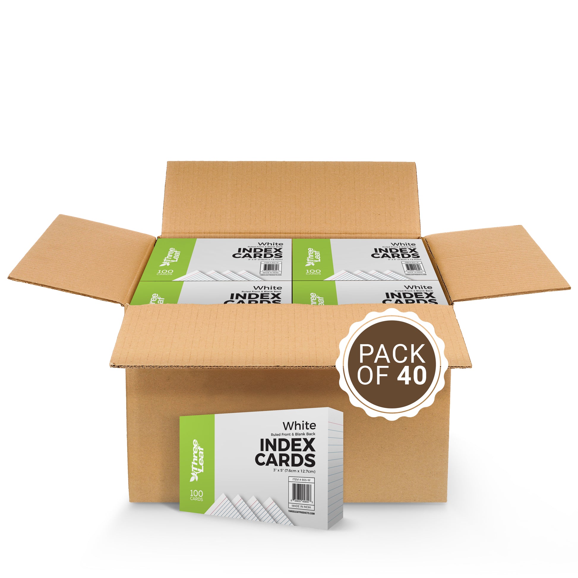 Three Leaf 100 Ct. 3 X 5, Index Cards Ruled, White