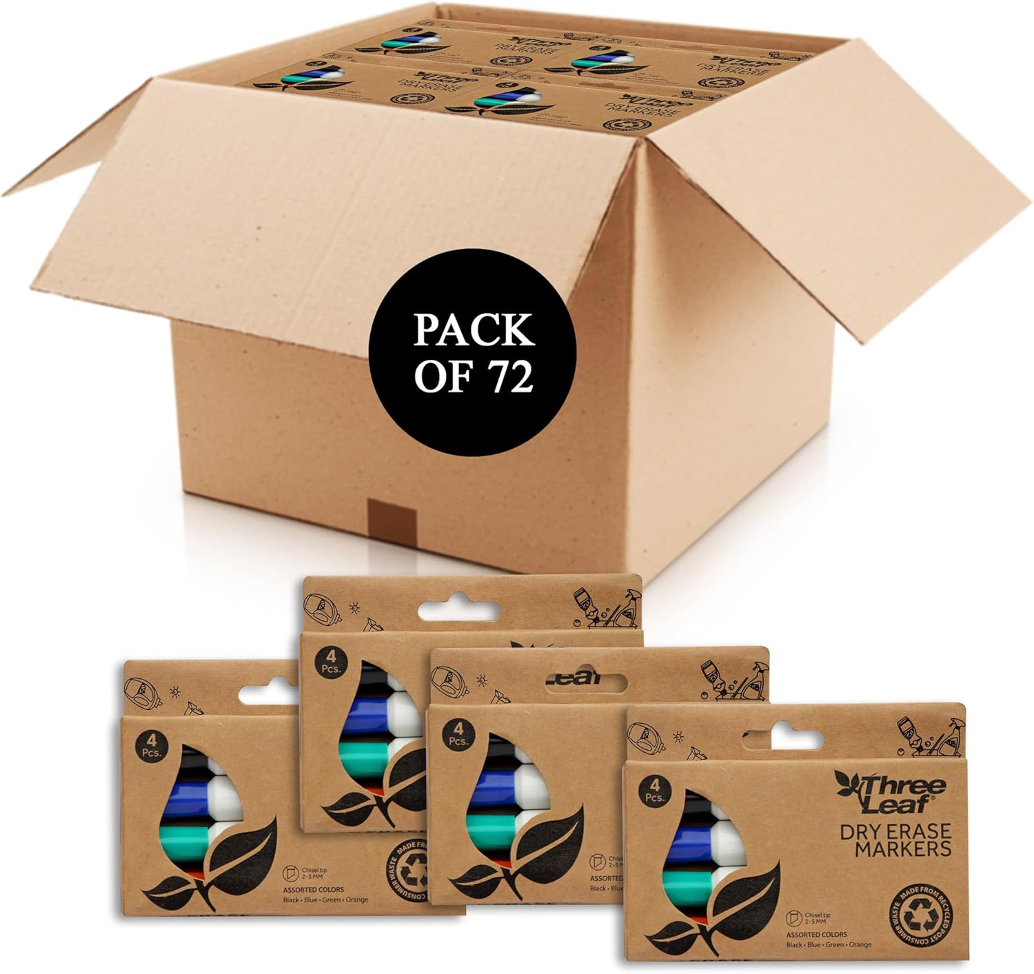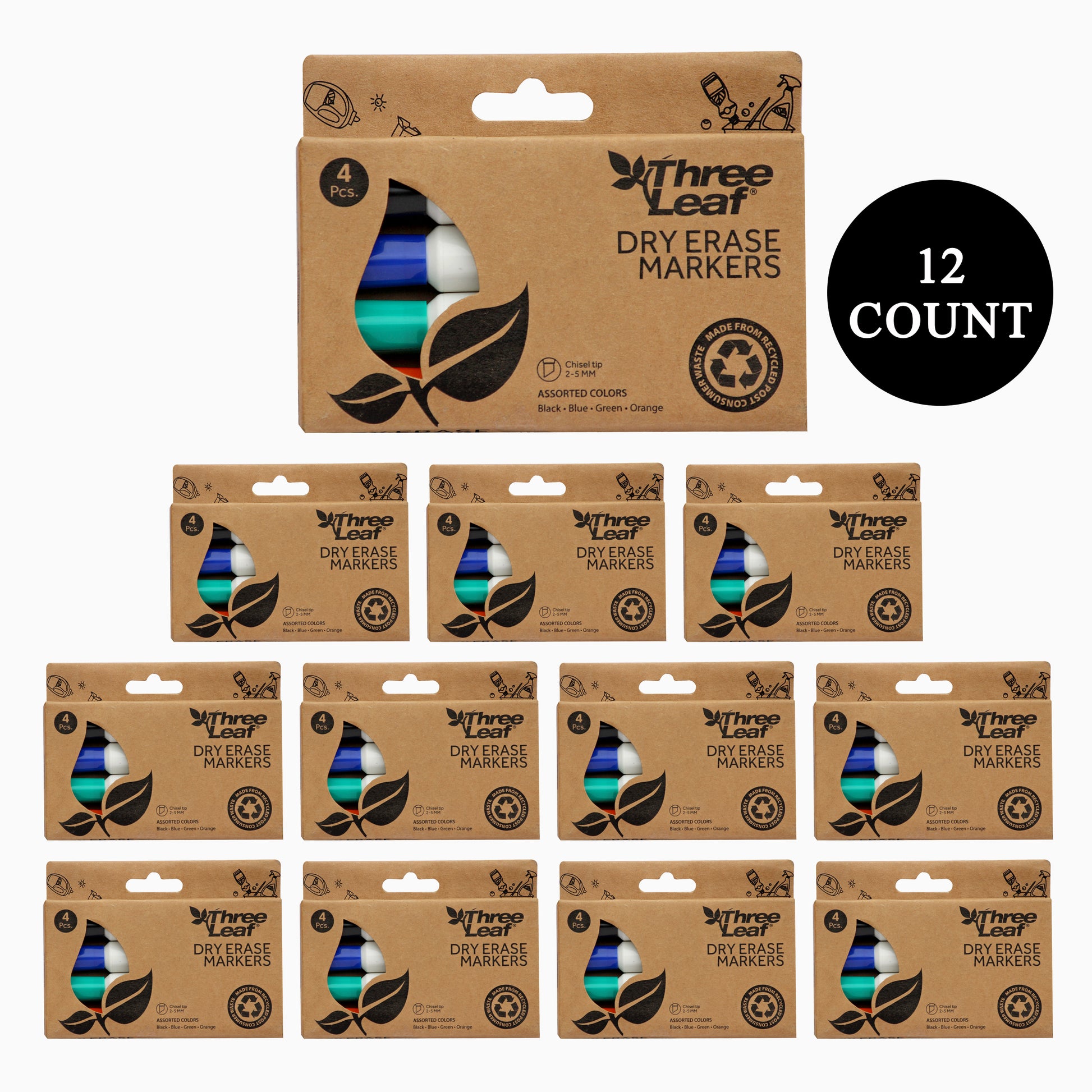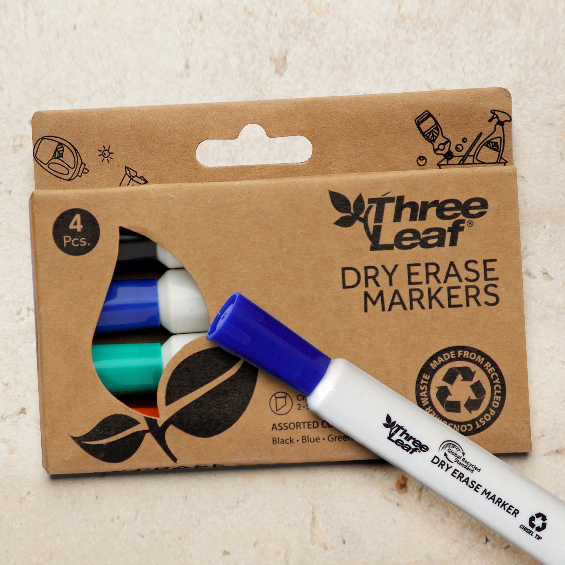 Three Leaf Dry Erase Marker 4 Pack, Assorted, Chisel Tip