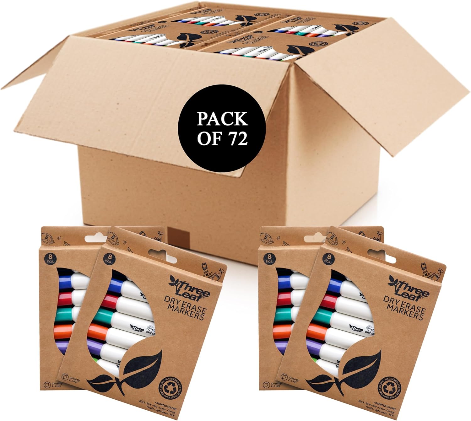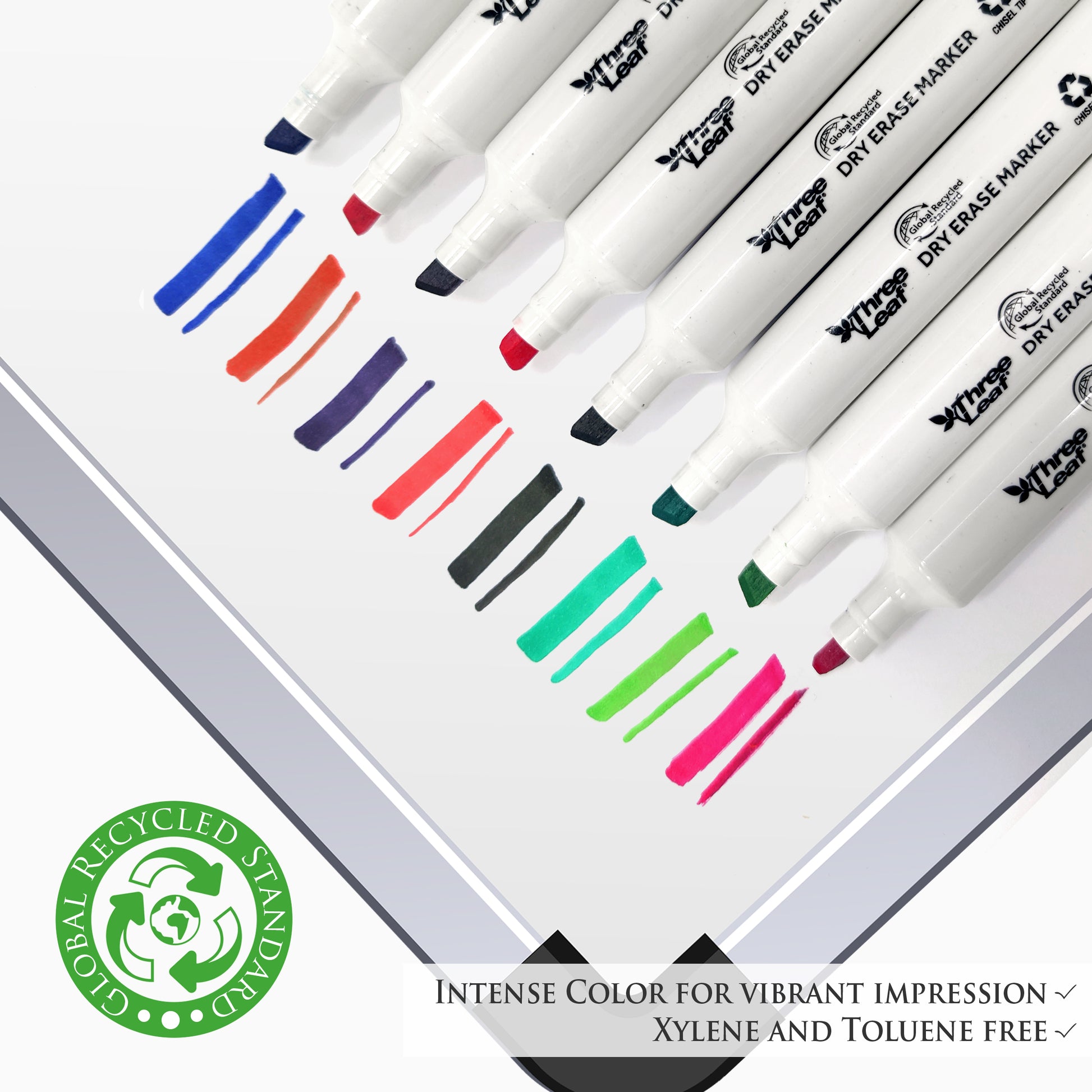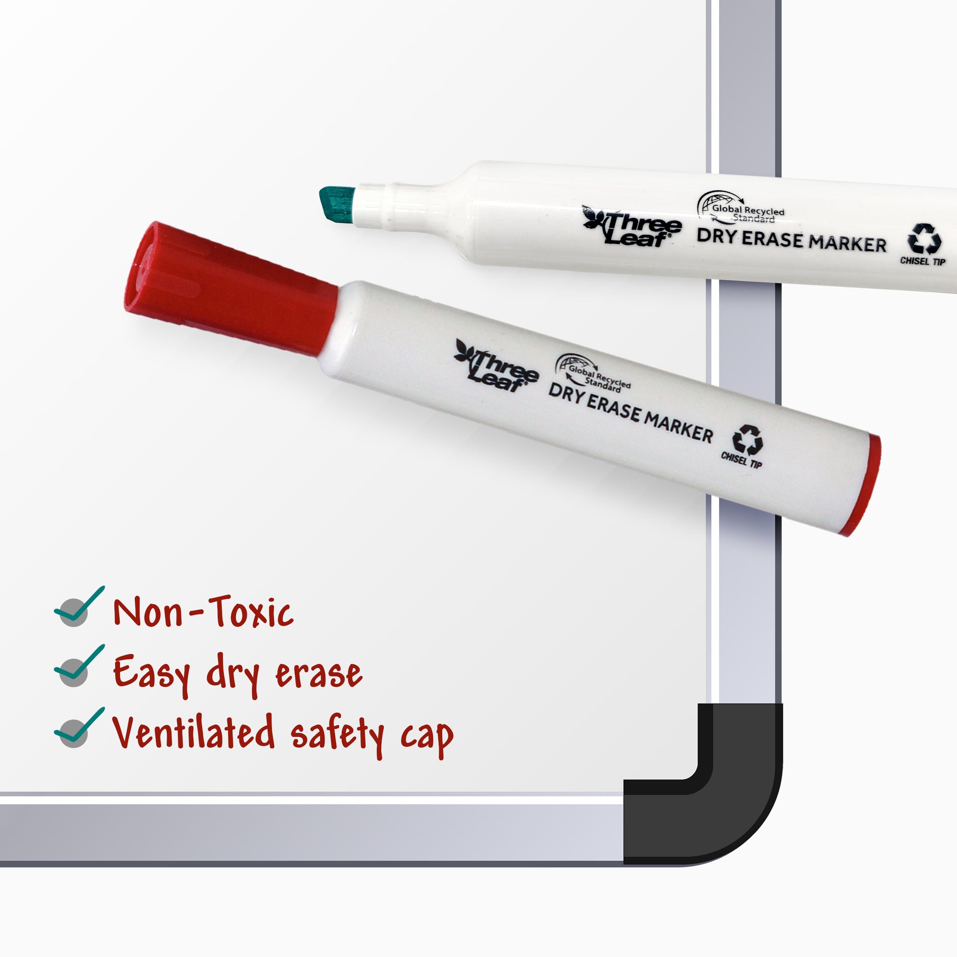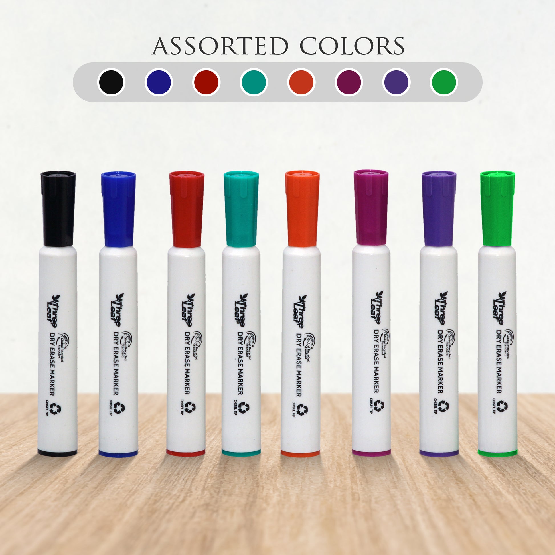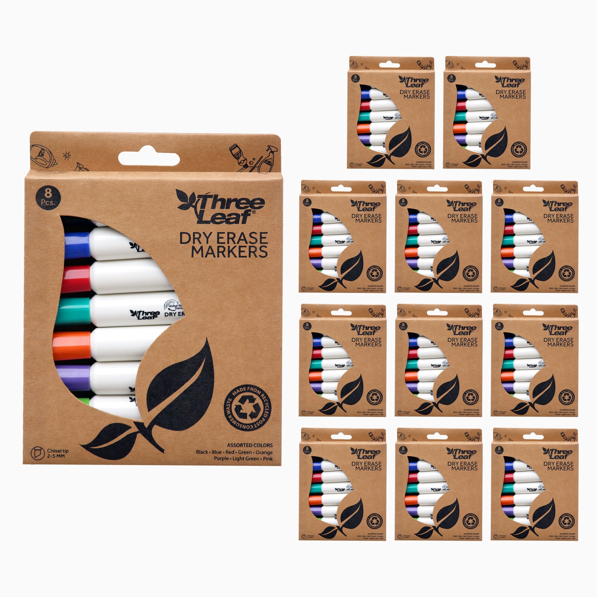 Three Leaf Dry Erase Marker 8 Pack, Assorted, Chisel Tip