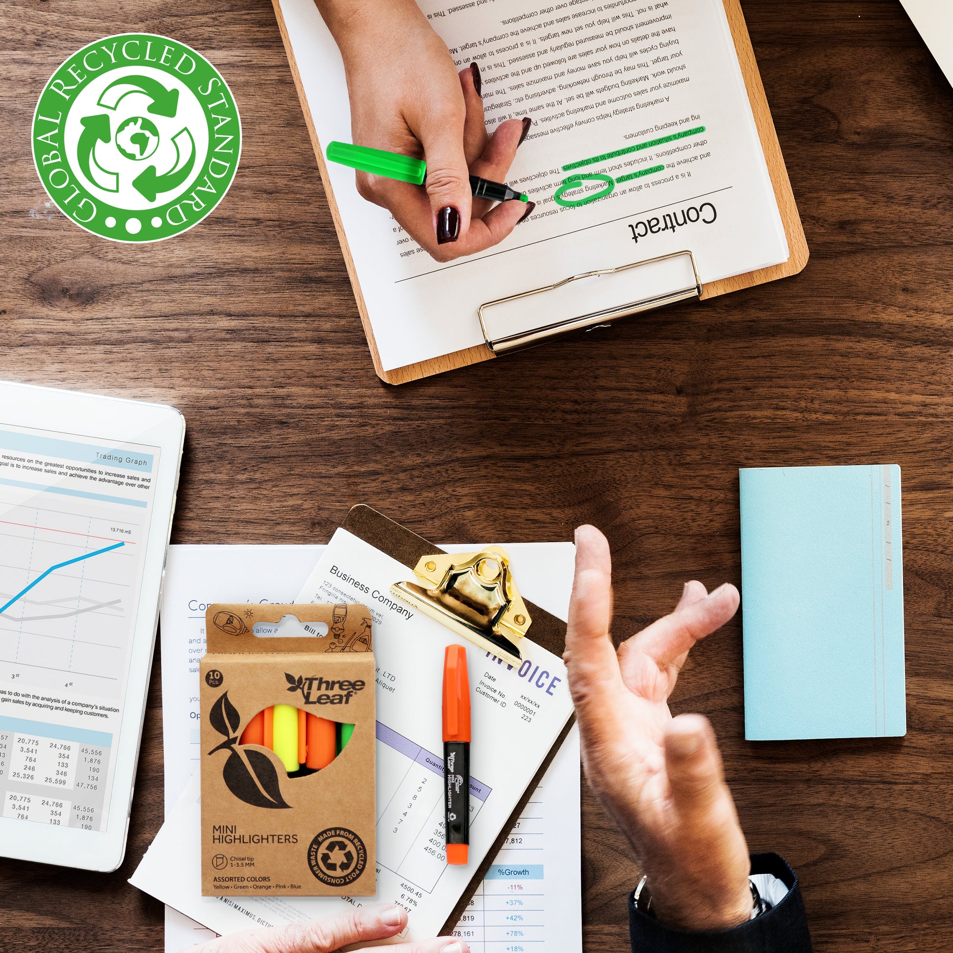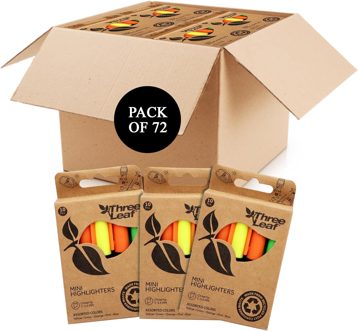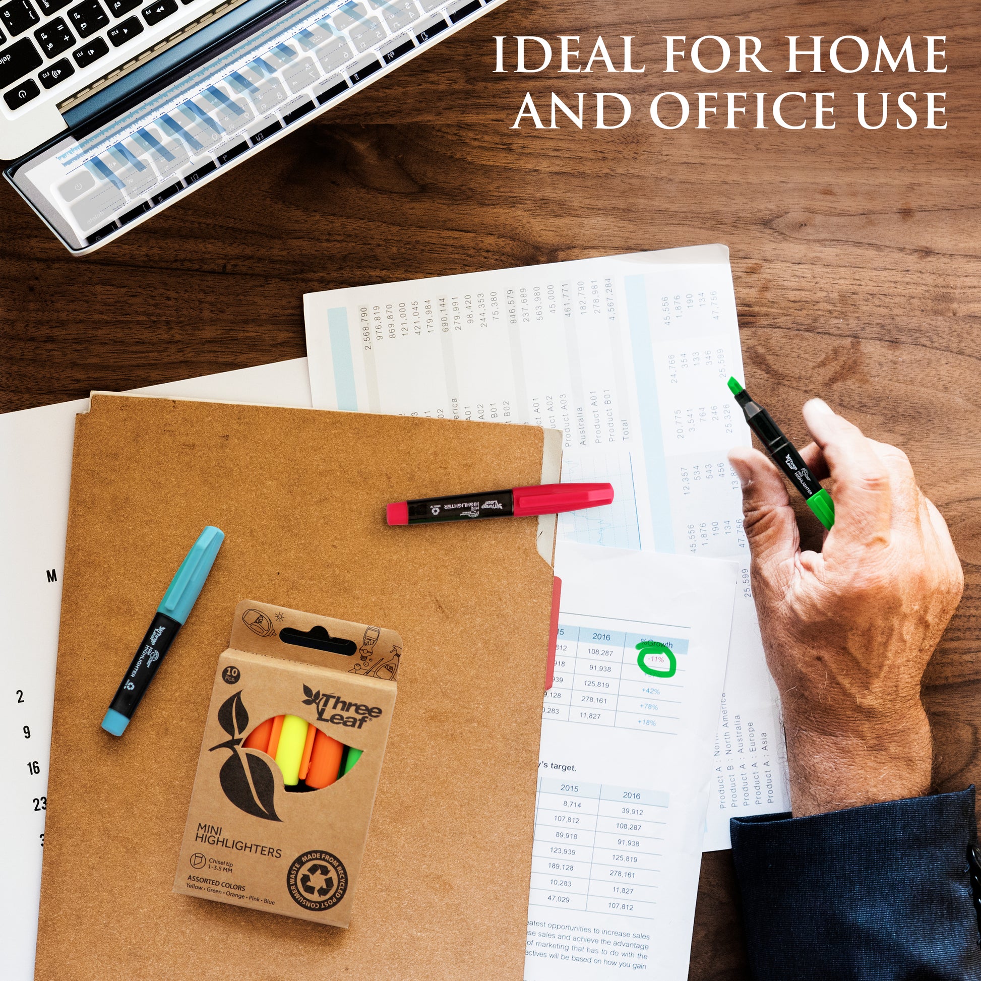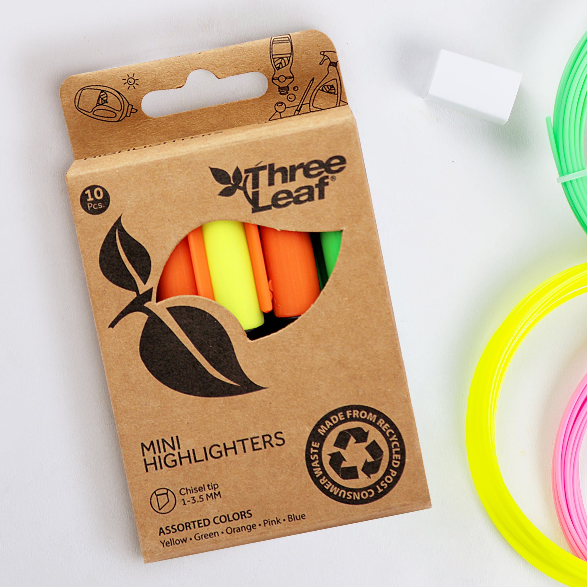Three Leaf Mini Highlighter 10 Pack, Assorted, Chisel Tip